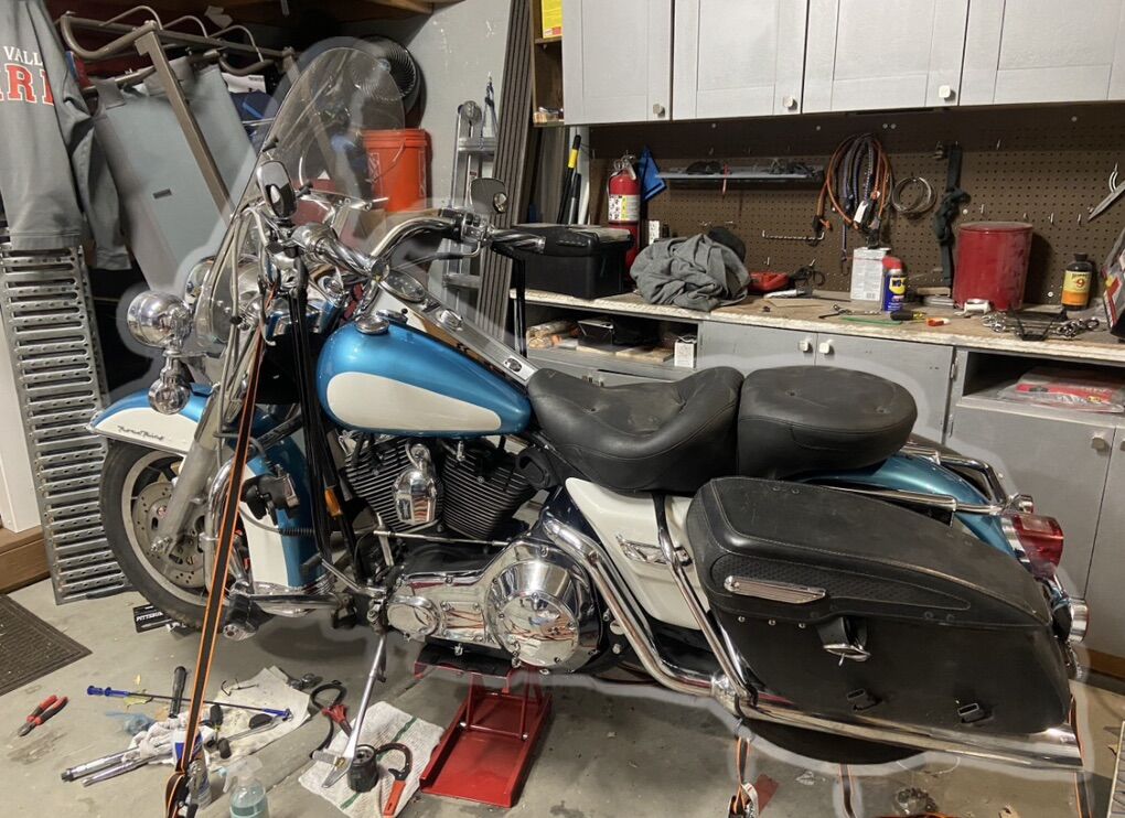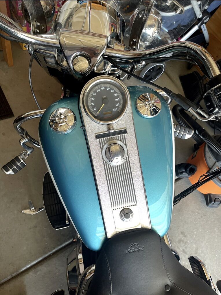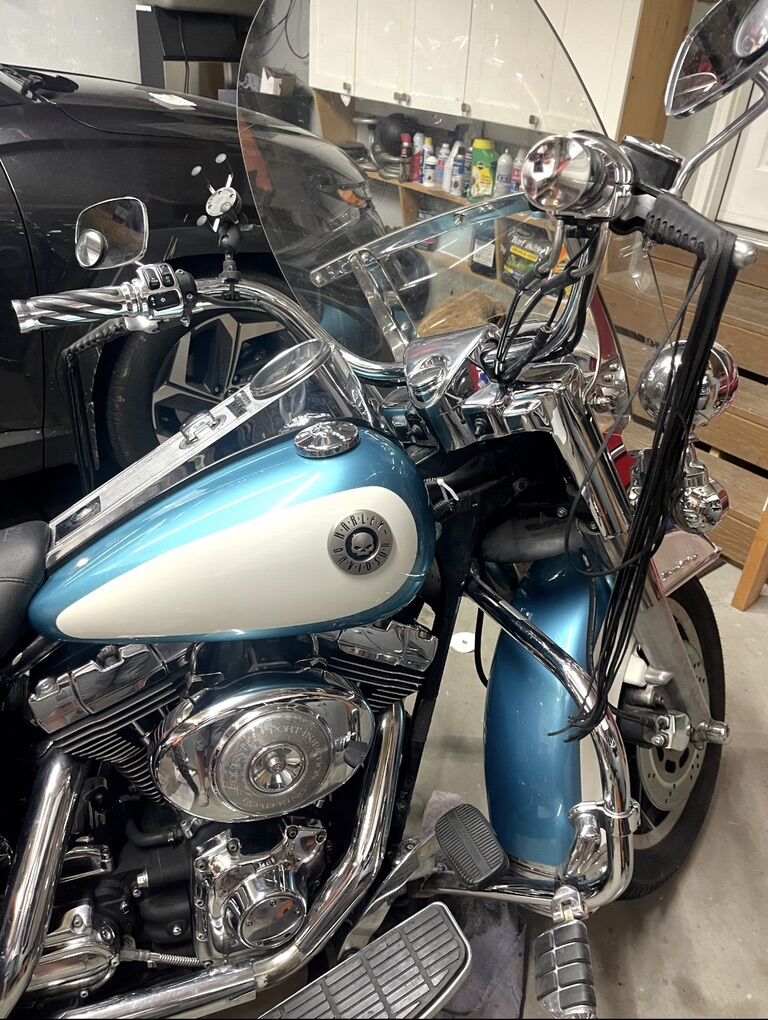I have a 1999 Harley Road King (FLHRCI). It is fuel injected. Just had the oil pump replaced. Repainted the bike and got new badges and fuel cap and battery gauge. Bike runs great. Has a mustang seat. Locking saddle bags. I have a fairing that color matches. Has 4 speakers in it and a bluetooth radio. Tons of extras. Also has new LED headlights. Comes with lots of extra parts and work manual. I also have a side cart that was gonna hook up to it (paint doesn’t match. It’s black) for my dog. We ended up having a kid and those dreams vanished like a wet dream. I have the title in hand and it’s a clean title. Let’s wheel and deal.