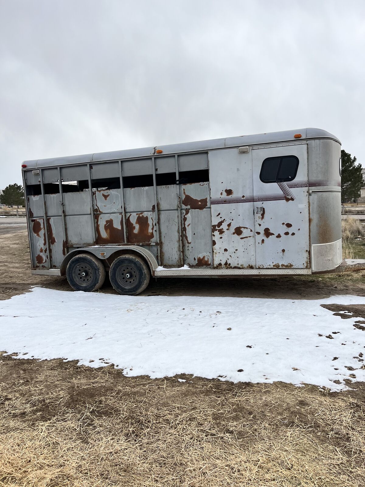 VenmoTrails west 4 horse slant load with dividers. Needs work with some rusty parts on sides and underneath so selling as a project. Just had bearings done and tires are good.