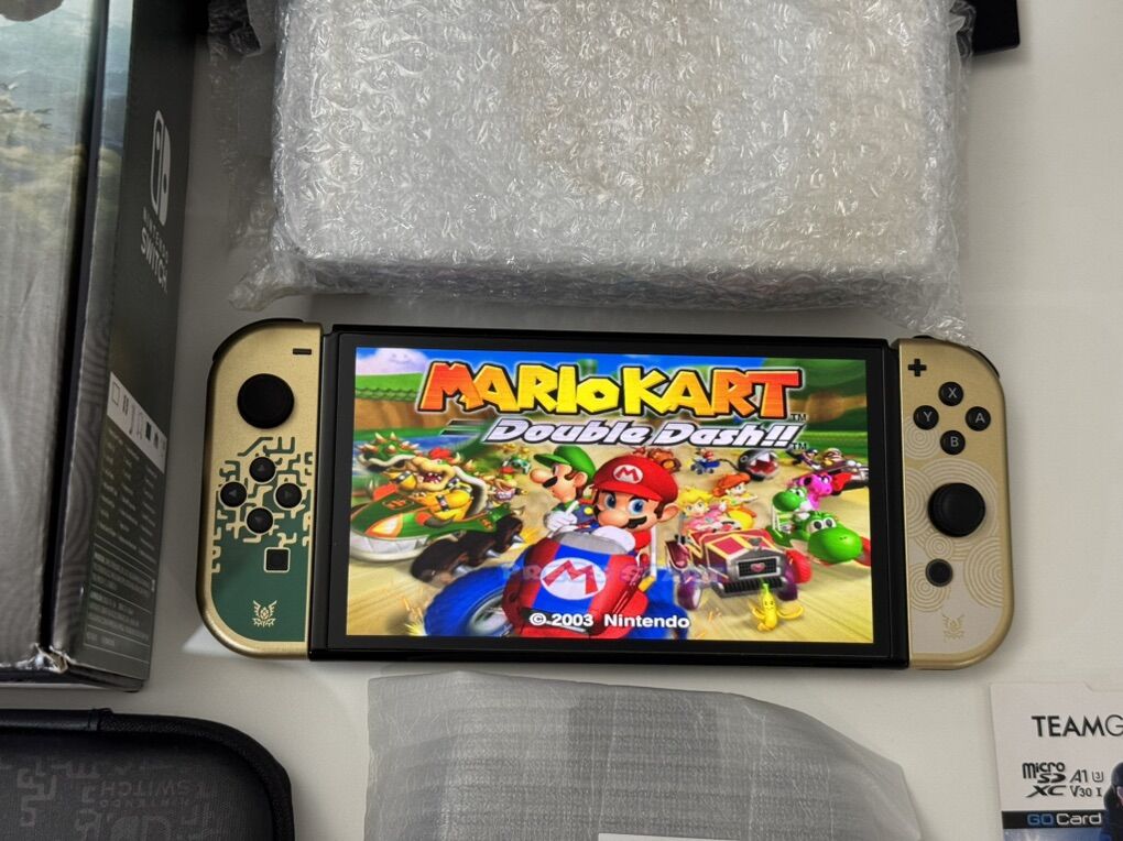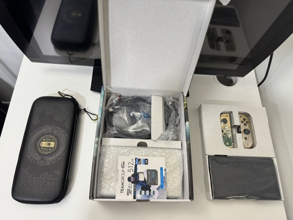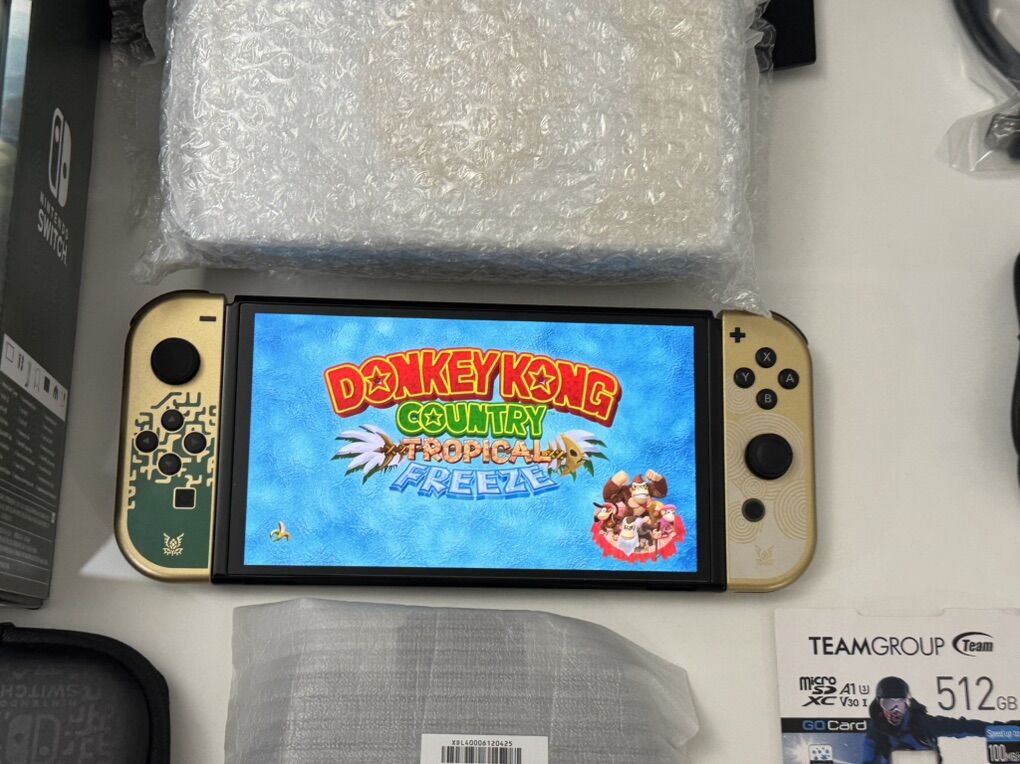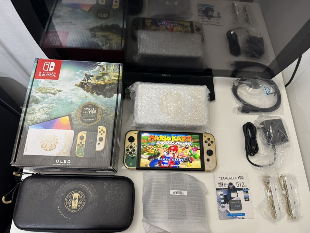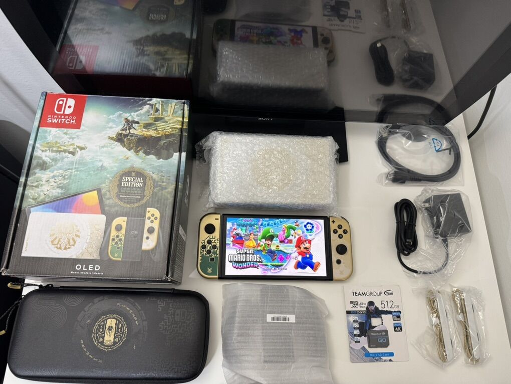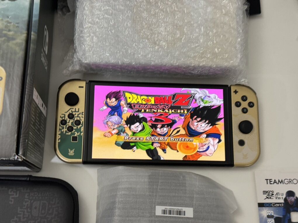 Zelle1 Nintendo Switch Oled Zelda Edition Mod HwFly Chip (Kamikaze Method) 1 Micro Sd TeamGroup 512gb Loaded 1 Dock 1 Joy-Cons 1 Grip 1 Charger 1 Hdmi Cable 1 Box