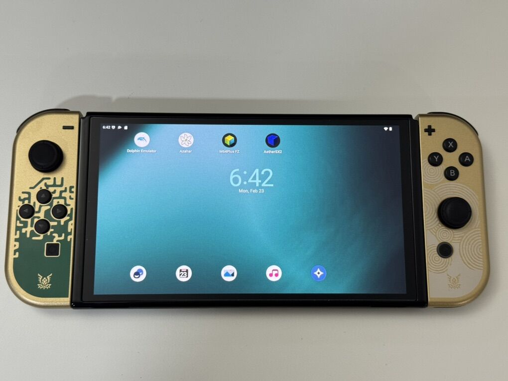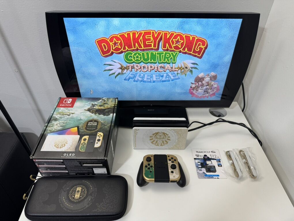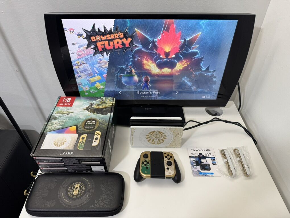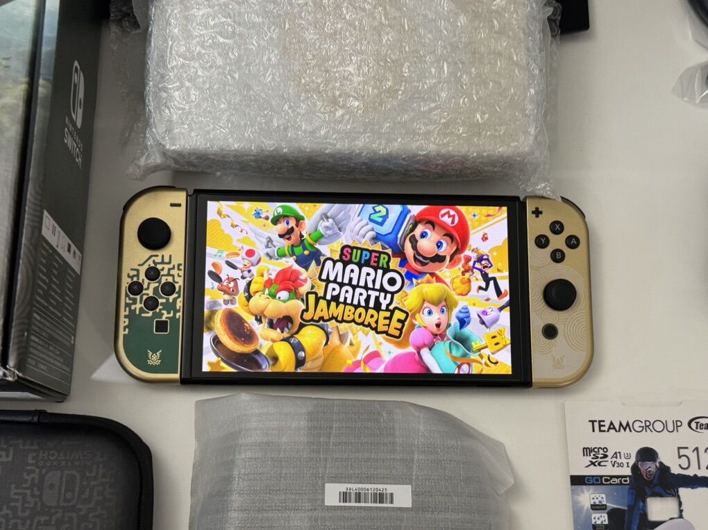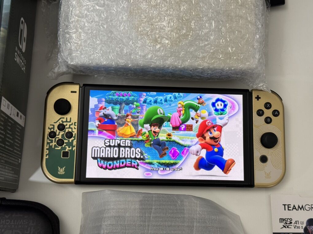 Zelle1 Nintendo Switch Oled Zelda Edition Mod HwFly Chip (Kamikaze Method) 1 Micro Sd TeamGroup 512gb Loaded 1 Dock 1 Joy-Cons 1 Grip 1 Charger 1 Hdmi Cable 1 Box