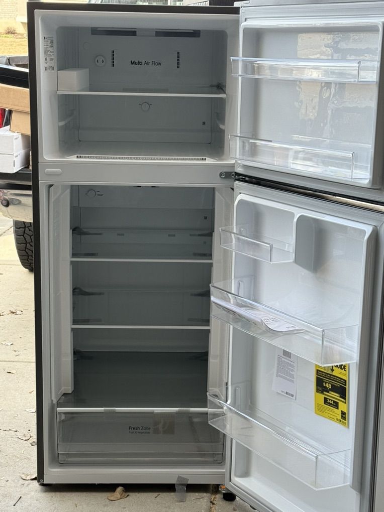LG Top Freezer Refrigerator 18 CU FT Capacity Garage Ready Multi-Air flow system Premium LED Lighting Glass Shelves Reversible Door