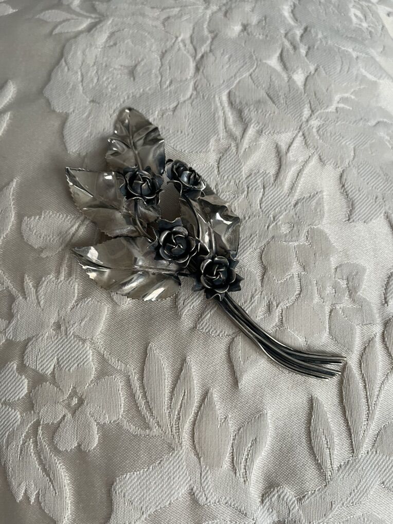 VenmoGorgeous large sterling flower pin. This measures 4 1/2 inches tall x 2 inches wide. It has beautiful detail. My jewelry appraiser told me this was pre World War II. A must see piece. Price is firm.