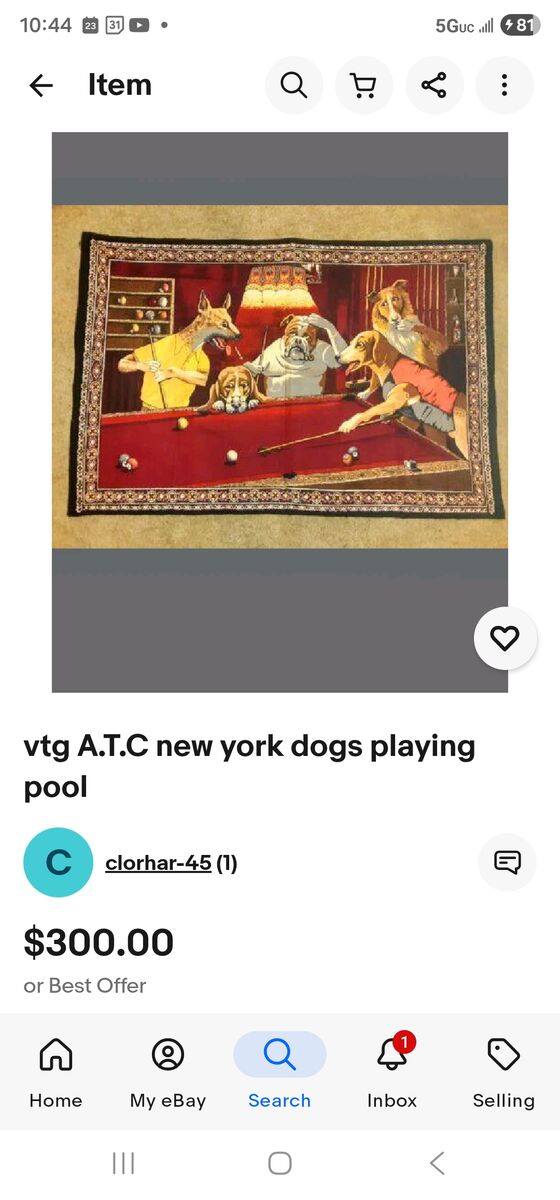 PayPalThese two velvet tapestries are antique and professionally framed by Hobby Lobby frame shop for me. Classic dogs playing pool and dogs playing poker. Moving to East Coast and can't bring with. Sells unframed for $300 and up elsewhere(see photo). Im selling for $250 Each professionally stretched and framed, ready to hang on wall! FCFS Cash only, but will accept 1/2 down via cash app, venmo or PayPal only to hold till pickup with cash at pick up 208-957-9545