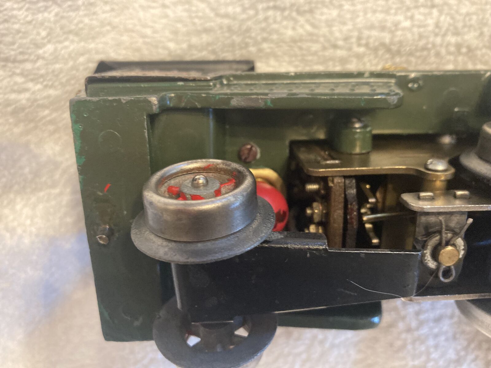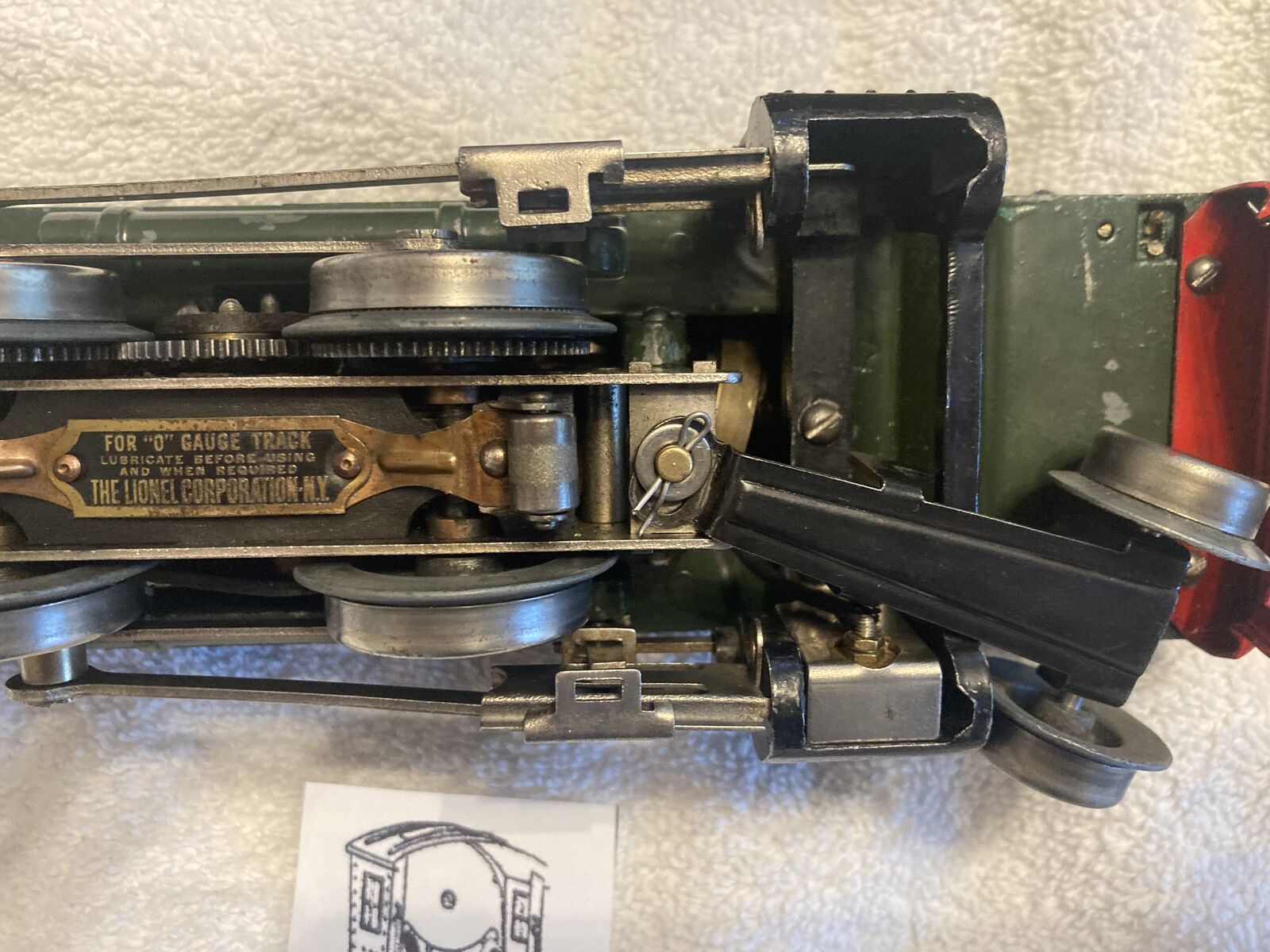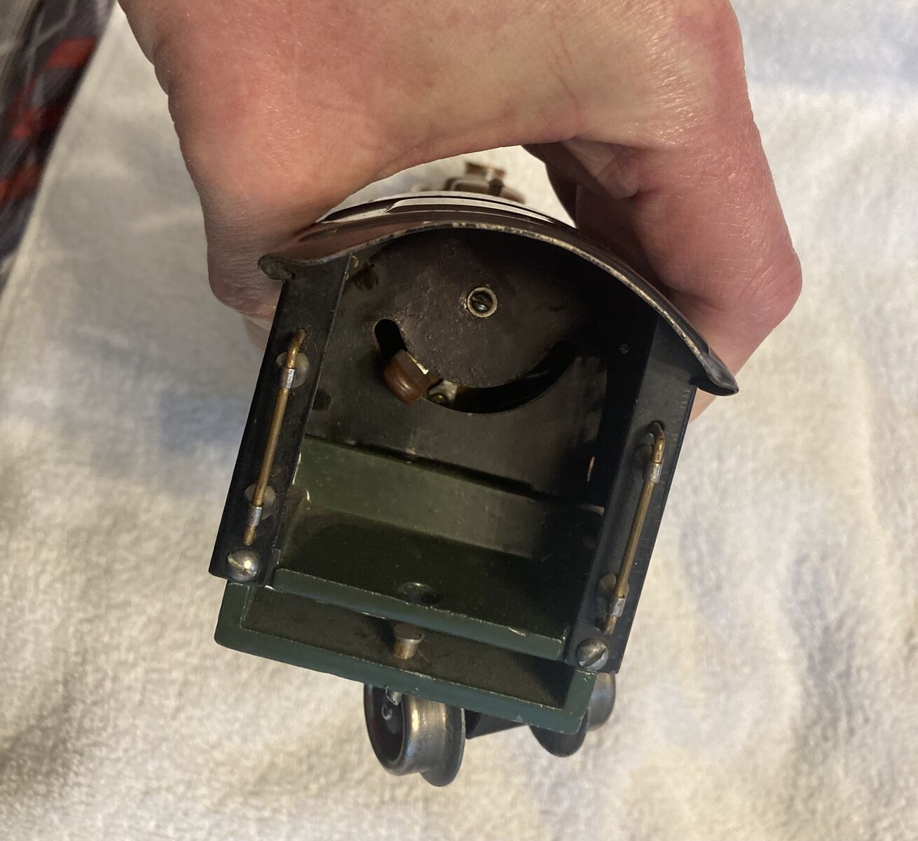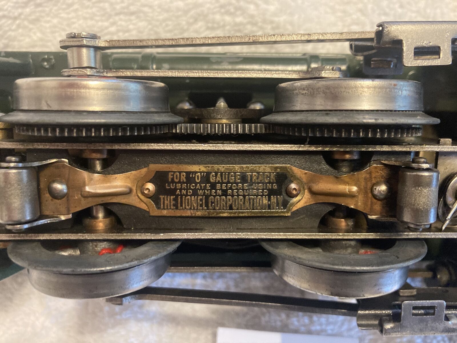 Up for sale Vintage Lionel “O” gauge prewar 260E locomotive circa 1930 to 1935 with a chugger mechanism and a pendulum 2 position reverse mechanism. The locomotive is complete with all the trim, no warping of the frame, original paint but there maybe some repainting of the frame and cow catcher. The wheels may have been replaced at some time as the originals were prone to zinc rot. The locomotive headlight and red firebox light under cab lit when power was applied, the motor ran and the chugger did work and chugged with the wheel revolutions. I did get it to reverse but it was finicky I was testing it with leads from the transformer and not on a track. There is a paper with a diagram of the position that the lever inside the cab has to be in order for the different locomotive functions to occur. I don’t have a layout as these have been on display. It may work better on level track but it will need some maintenance and adjustments to be run regularly, just know it doesn’t function very good right now