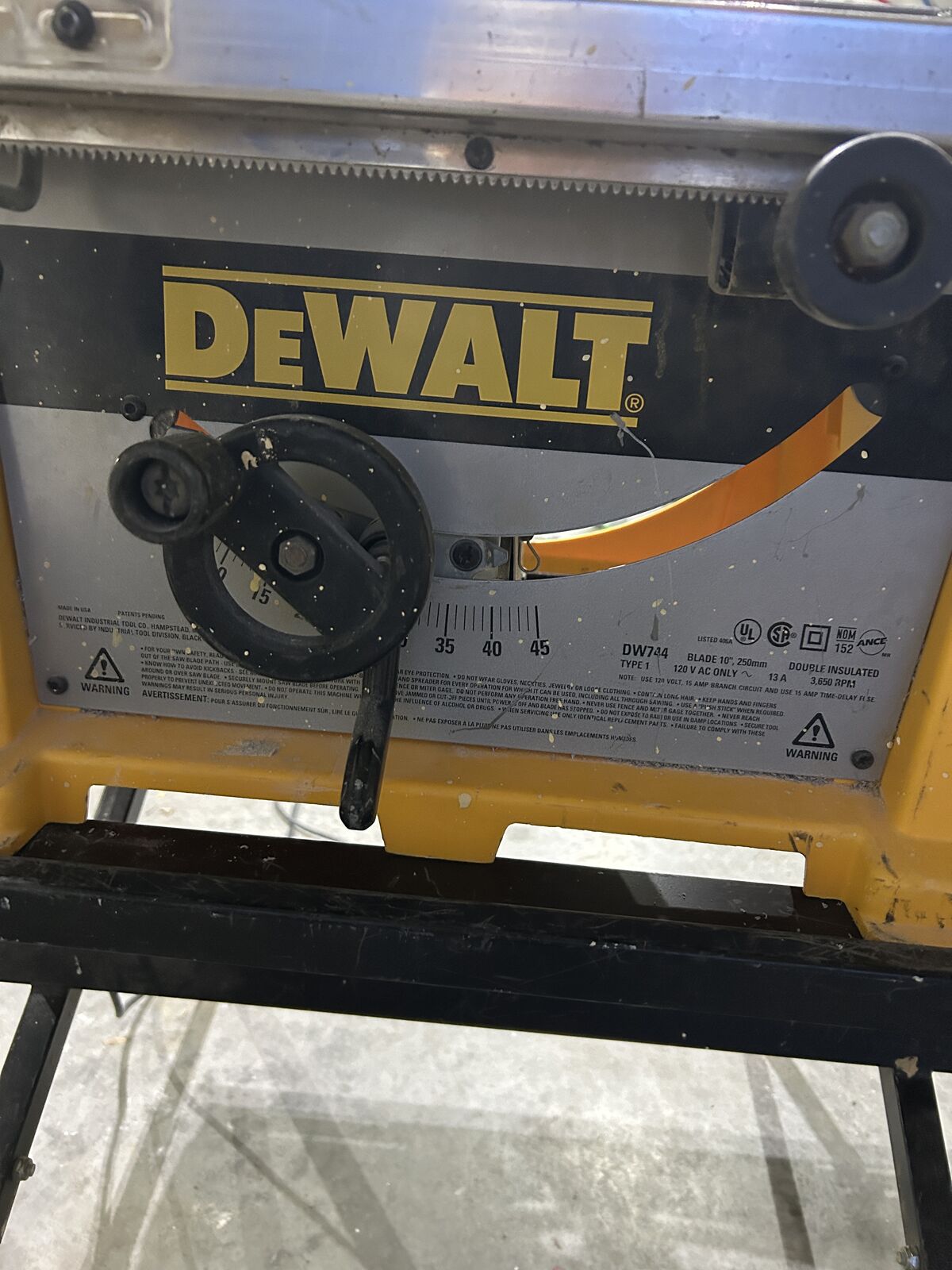 VenmoDeWalt DW744 table saw, Type 1 13-amp motor, 10" blade, 3650 RPM. Saw runs strong and smooth. Has been in storage but powers up and operates as it should. Blade included. NOTE: Fence ia nor included (lost during a move). Replacement or aftermarket fences are available online if needed. Good solid jobsite saw for someone who already has a fence, wants to build a custom setup, or use for parts. Local pickup only. Cash preferred. Located in Springville, Utah.