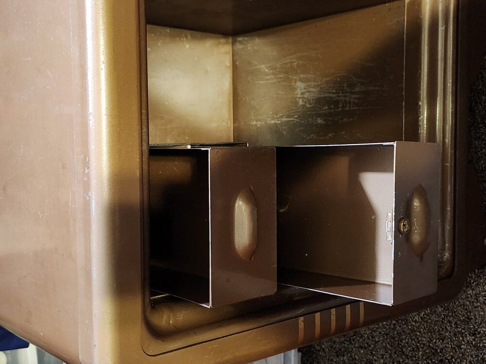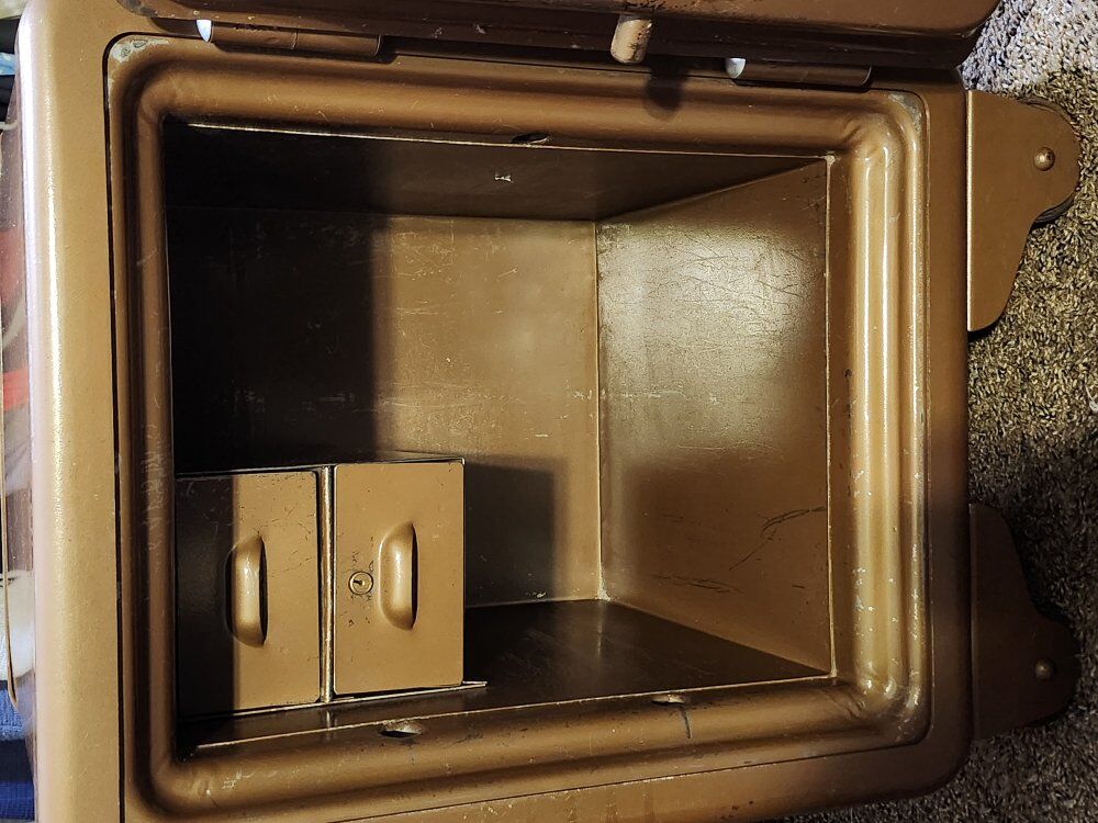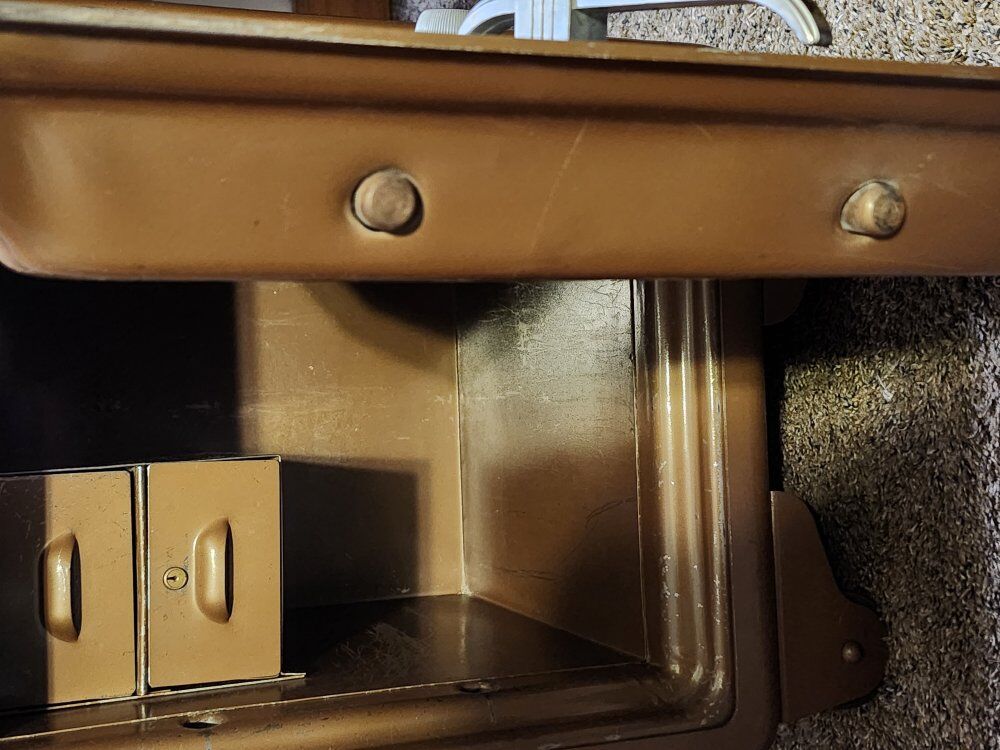 PayPal1950's Sentry Safe on wheels Brush-Punnett Co. Rochester, N.Y. U.S.A. 'Sentry Gaurds Your Treasure' Outter measurement: 24" x 17" x 17" Inner measurement: 15" x 13" x 12" Drawers: 3.25" x 5.25" x 11"