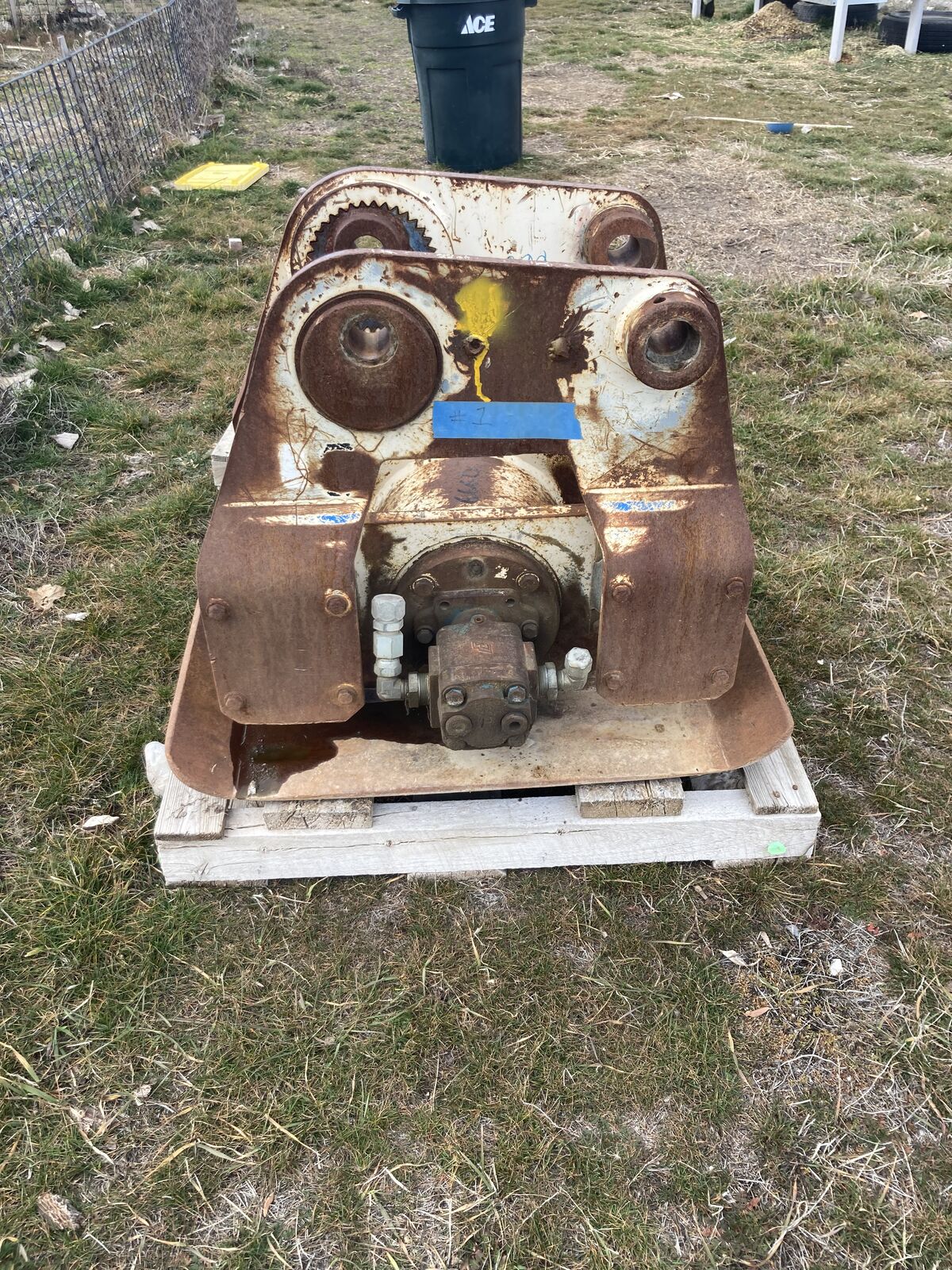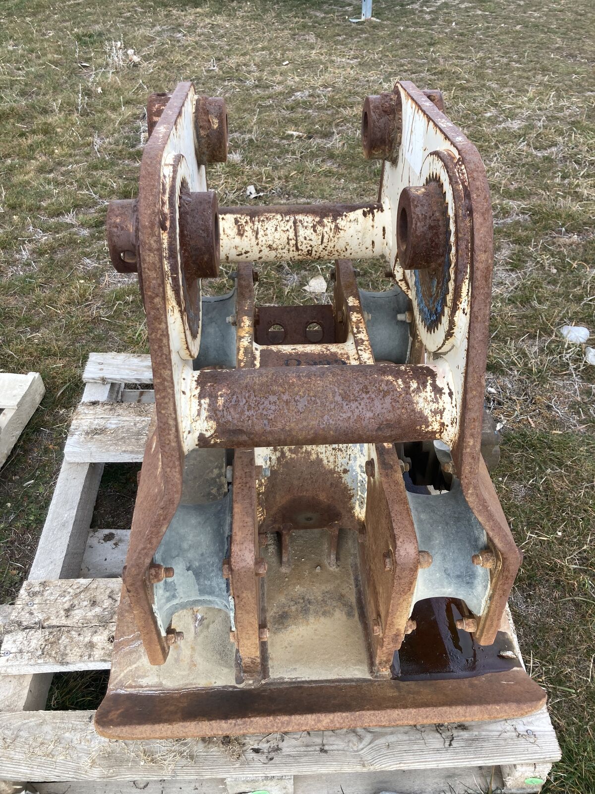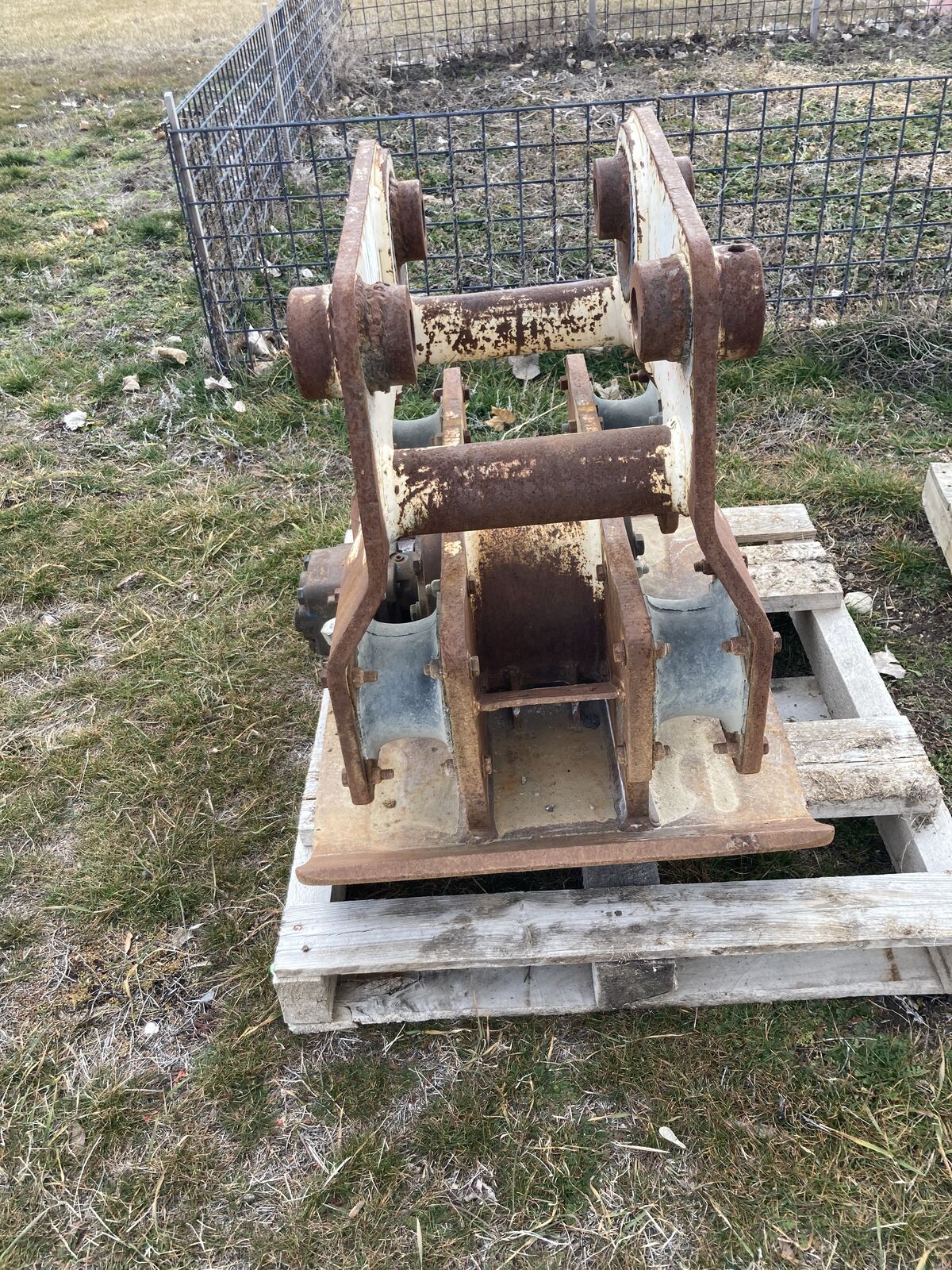 VenmoKent plate compactor for a backhoe or excavator. Message with questions. It does not have hoses. Pin holes are 1-3/4” diameter, pin spacing is 13-1/2”, the pin spacing is adjustable with removing a snapring and adjusting the bushings. 24"x32" plate.