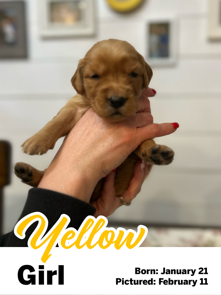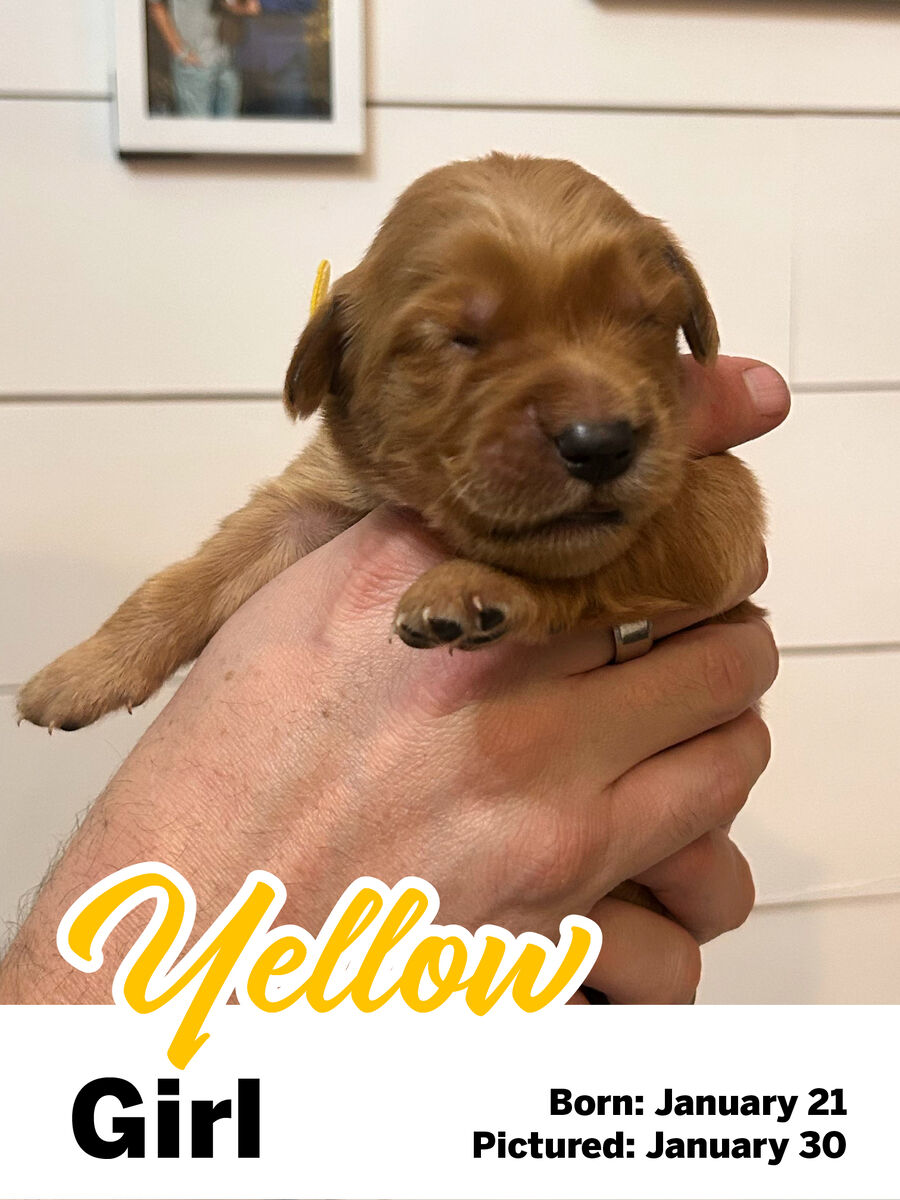"Yellow" is a girl with a gorgeous red coloring. She loves running around and wrestling with the other puppies. She loves being close to people.