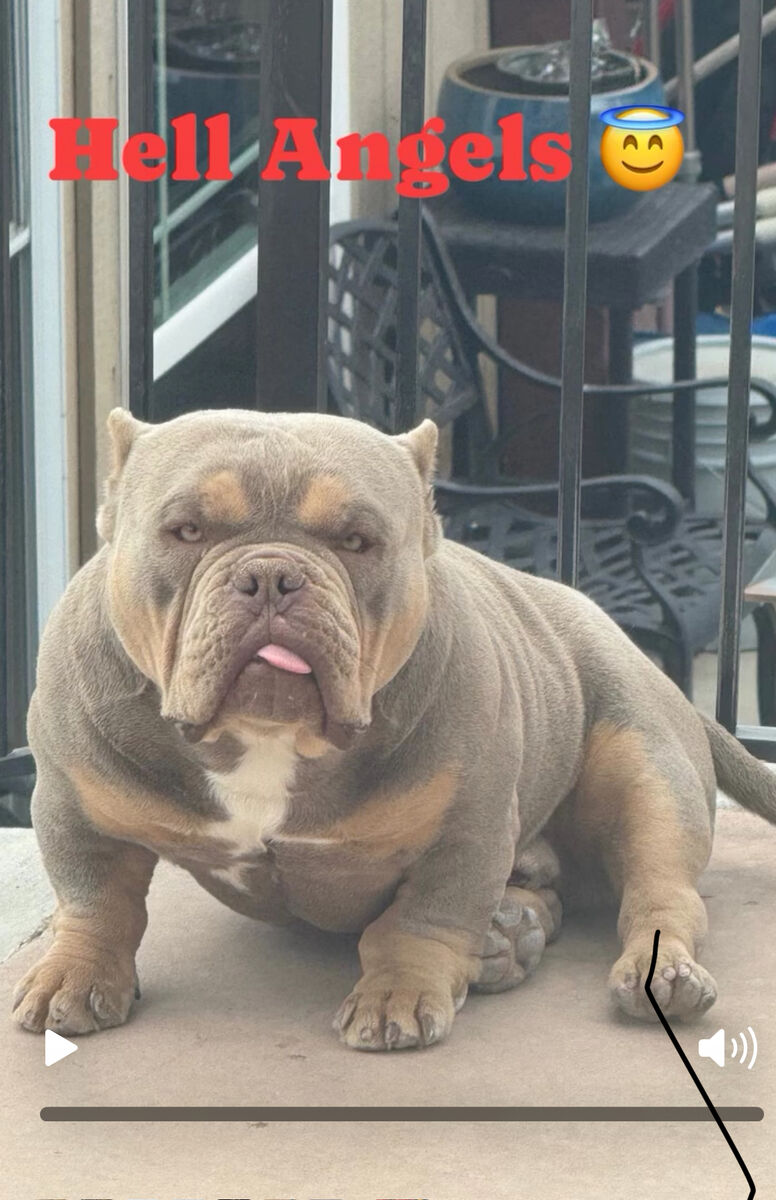 Hell Angels is up for stud service. The boy is a best! Ghost Tri-lilac. He low and thick the boy is full of muscle. Awesome bloodline! Mr. Big grandson, and Bape bloodine.