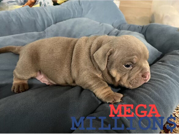 I have Mr. Big grandson available. He is short and thick. His temperment is very chill. Kids and other dogs he get along with. Pet price $1500 with a 3 studs credit. I do stud him out too! $700 stud fee. He can produce any colors and thick puppies. He is almost two years old and proven!