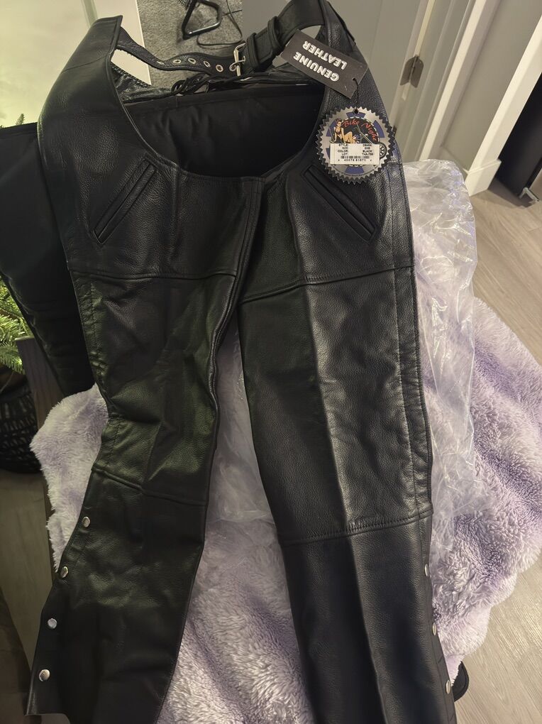 ApplePay2 pair leather chaps. Both brand new just didn't fit. Please make offer never worn or used. Paid 150$ & 200$. 175$ for the pair or 100$ for one. My loss is your gain. Get ready for the spring!! Daniel smart chaps XS (Brand new) 100$ Night smart XS (Brand new) 100$