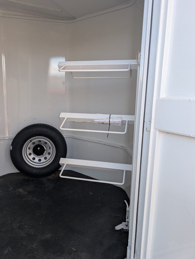 Large front tack room with original mats Everything works, electric trailer breaks on all 4 tires, trailer lights 15" tires. regular maintenance done. One owner. Has a couple of cosmetic dents but that's it.