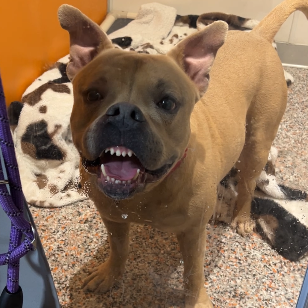 Meet McLovin’. He is the life of the party with four paws and a permanent smile! McLovin’ is an energetic, joy-powered pup who believes every day is meant for mini adventures and couch cuddles. Whether he’s zooming around the yard, chasing toys like it’s his full-time job, or recruiting you snugs, he brings enthusiasm to everything he does. This guy thrives with an active family who’s ready to match his upbeat spirit. He’d love , backyard games and anyone willing to toss a ball and celebrate life alongside him. Looking for a canine companion for your dog? McLoving has shown to have great dog skills. He was in playgroup at the previous shelter, and we have used him to test other dogs onsite because he is so calm and comfortable with other dogs. If you’re looking for a fun-loving companion who will keep you laughing, moving, and smiling, McLovin’ is ready to make your life a whole lot more exciting. If you would like more info, please call/text our adoptions team at 385-405-5145. We are open seven days a week between 11am-7pm. There is no appointment required to meet our onsite available animals, so stop in today!