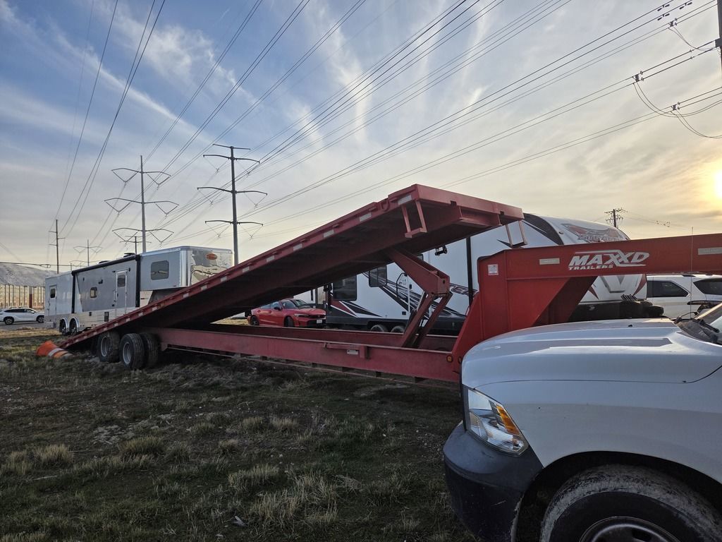 Fresh Local Trade In. Front landing gear may need some work. Rare, Hard to Find Used MAXX-D Hydraulic 40 Foot Tilt Deck Over Equipment HotShot Trailer!! Gettr Before She's GONE!! 7JM058030