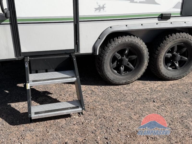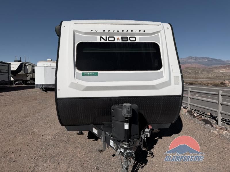 The No Boundaries travel trailers and toy haulers by Forest River are easy to tow by a four or six-cylinder vehicle because they range in weights from under 2,000 pounds up to 5,000 pounds. Depending on the model you choose, you will find independent torsion suspension with industry-leading cargo capacity, six-lug satin black aluminum wheels and All-Terrain tires, frame-mounted walkable steel fenders, a laminated Azdel exterior, a Cold Weather package, and a fully walkable 500-LB roof with PVC roofing membrane. The interior offers an exclusive central vacuum system plus much more! You will find a NOBO in a 10 Series, 16 Series or a 19 Series to fit your extreme lifestyle, so make your selection today! DLR #886B