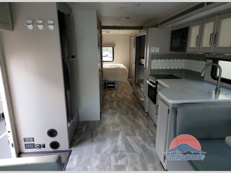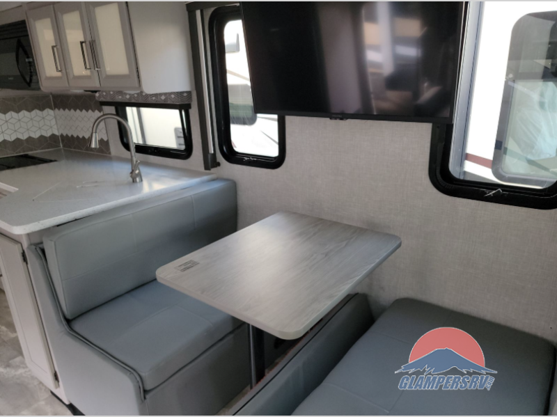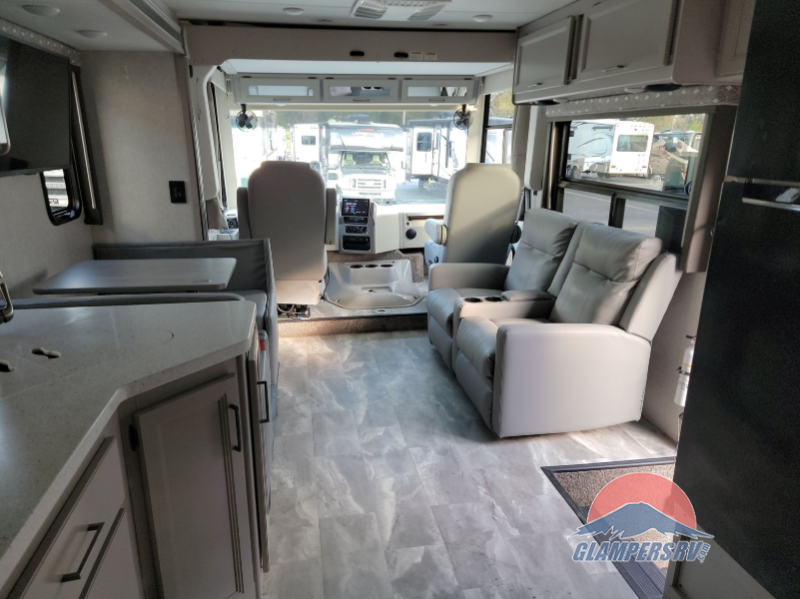 There are all sorts of adventures to be had with the Thor Motor Coach Windsport Class A gas motorhome! Built on a Ford F-53 chassis, the Windsport will gather lots of attention with its HD-MAX® exterior with graphics package. It also offers you a basement pass-through storage and a Pet-Link multi-purpose tie-down. The Bird's Eye window is so easy to see through in the cockpit, and there are reclining/swivel leatherette captain's chairs to relax in while you travel. The Winegard® ConnecT Wi-Fi extender +4G will allow you to post on your social media or send an email from the cockpit's dash work station, and the Rapid Camp+® multiplex wiring control system with Bluetooth and 10" touchscreen will allow you to control and monitor the various electrical systems on your coach.