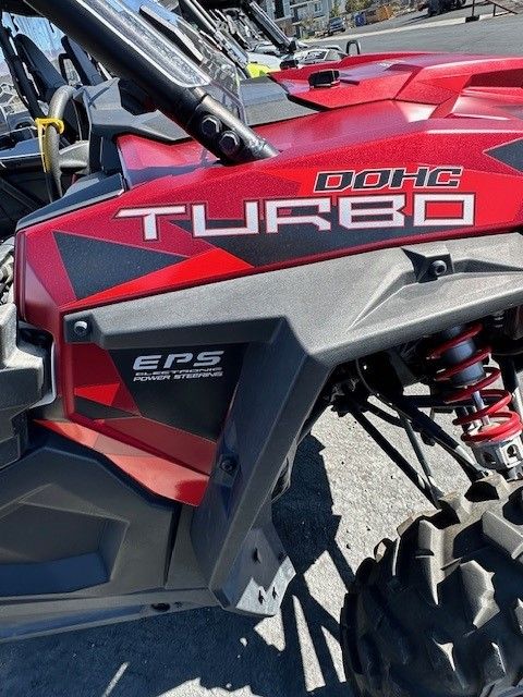 Stock #: P29935 Engine Type: ProStar Turbo H.O.; 4-Stroke DOHC Twin Cylinder Turbocharged Displacement: 925cc Cooling: Liquid Fuel System: Electronic Fuel Injection Front Suspension: Dual A-Arm with Stabilizer Bar and 16 in (40.6 cm) Travel Front Brakes: 4-Wheel Hydraulic Disc with Triple-Bore Front and Dual-Bore Rear Calipers Front Tire: 29 x 9-14; Maxxis Bighorn Rear Suspension: Trailing Arm with Stabilizer Bar and 18 in (45.7 cm) Travel Rear Tire: 29 x 11-14; Maxxis Bighorn Dry Weight: 1,479 lbs (671 kg) Wheelbase: 90 in ( 228.6 cm) Ground Clearance: 13.5 in (34.3 cm) Fuel Capacity: 9.5 gal (35.9 L) Towing Capacity: N/A Transmission: Automatic PVT P/R/N/L/H Drive System: High Performance True On-Demand AWD/2WD