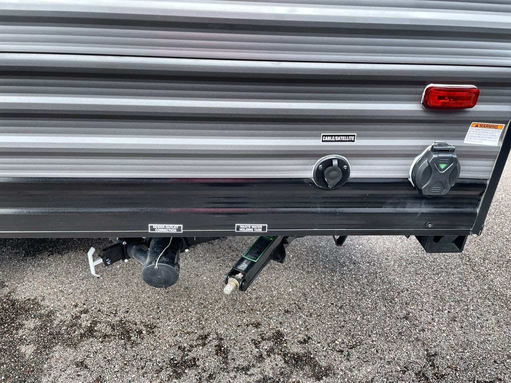 Comfortability, usability, and quality is what you will find in each one of these Forest River Aurora Light travel trailers! They are designed with a superior build and packed full with industry leading, functional, and distinctive standard features. The diamond plate rock guard will protect your unit from road debris and the nitrogen filled radial tires, which keep their pressure longer, offer better fuel economy. You will also find upgraded JBL Elite exterior speaker outside, an electric awning with multicolor lights and remote, plus flush mount baggage doors for easy packing. The interiors are beautifully designed with matte black kitchen and bath faucets, black nightshades in the living room, and GE kitchen appliances!