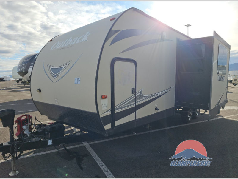 Let this Outback Ultra Lite 250URS travel trailer be your home away from home! This Keystone model has dual entry, a rear king bed slide, u-dinette slide, and a set of front bunk beds as well as an outdoor kitchen!