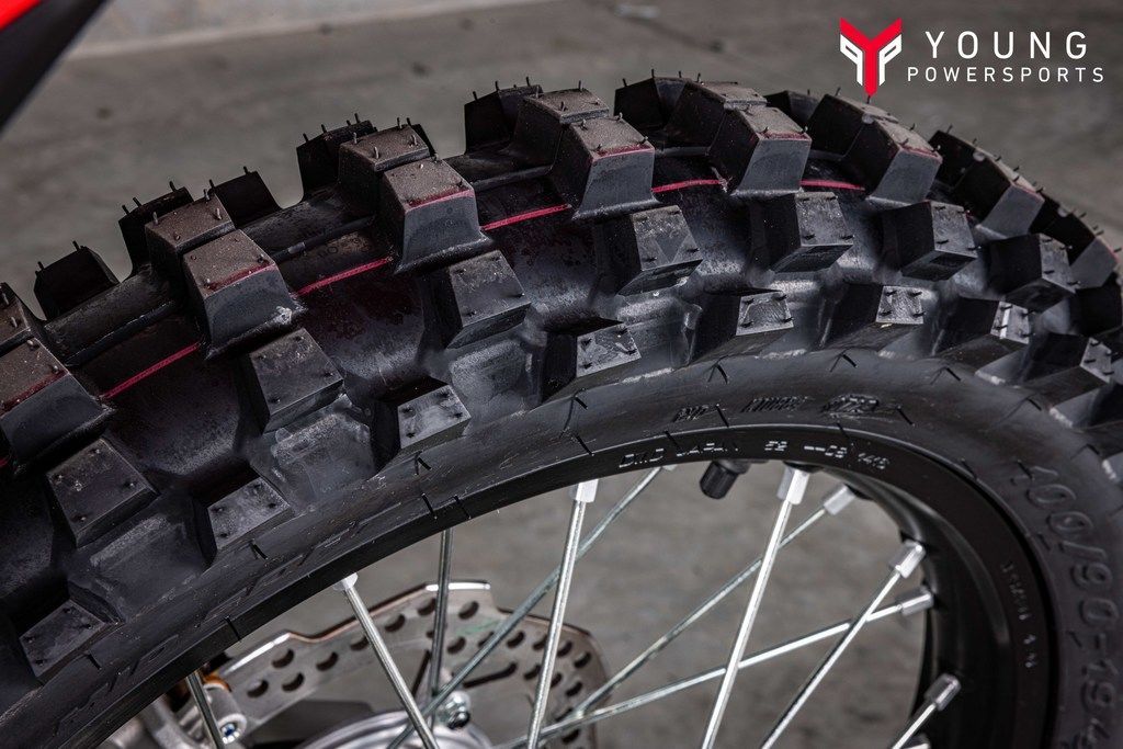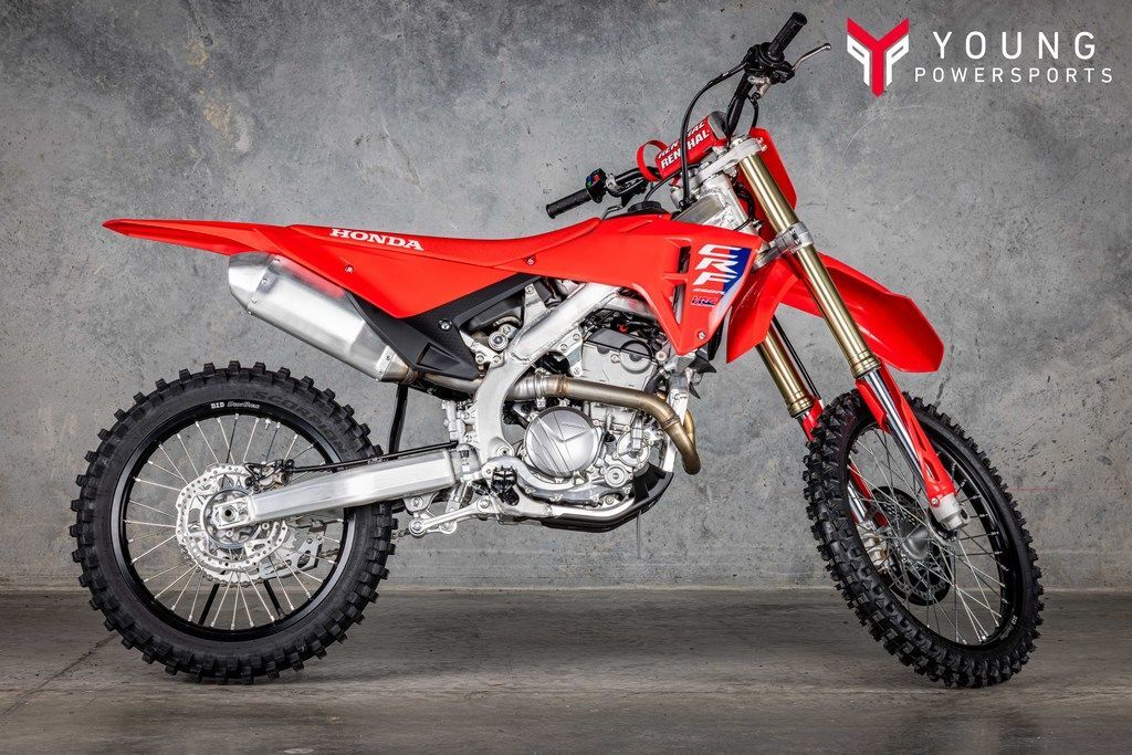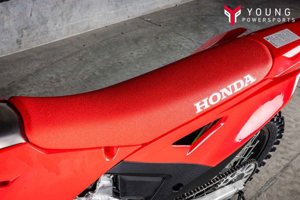 Like our factory racebikes, our CRF competition lineup features the vertically stacked CRF logos that look fast even sitting still.
