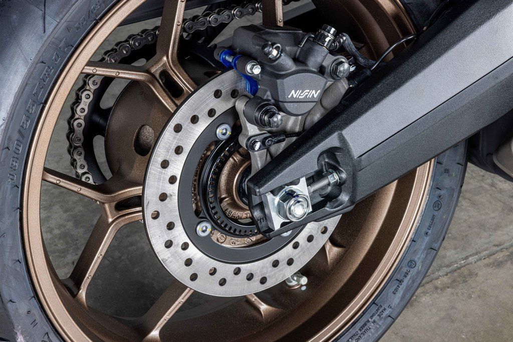 Featuring large 310mm dual discs gripped by radial-mounted four-piston calipers, the bike delivers premium stopping power that's linear and easy to modulate.