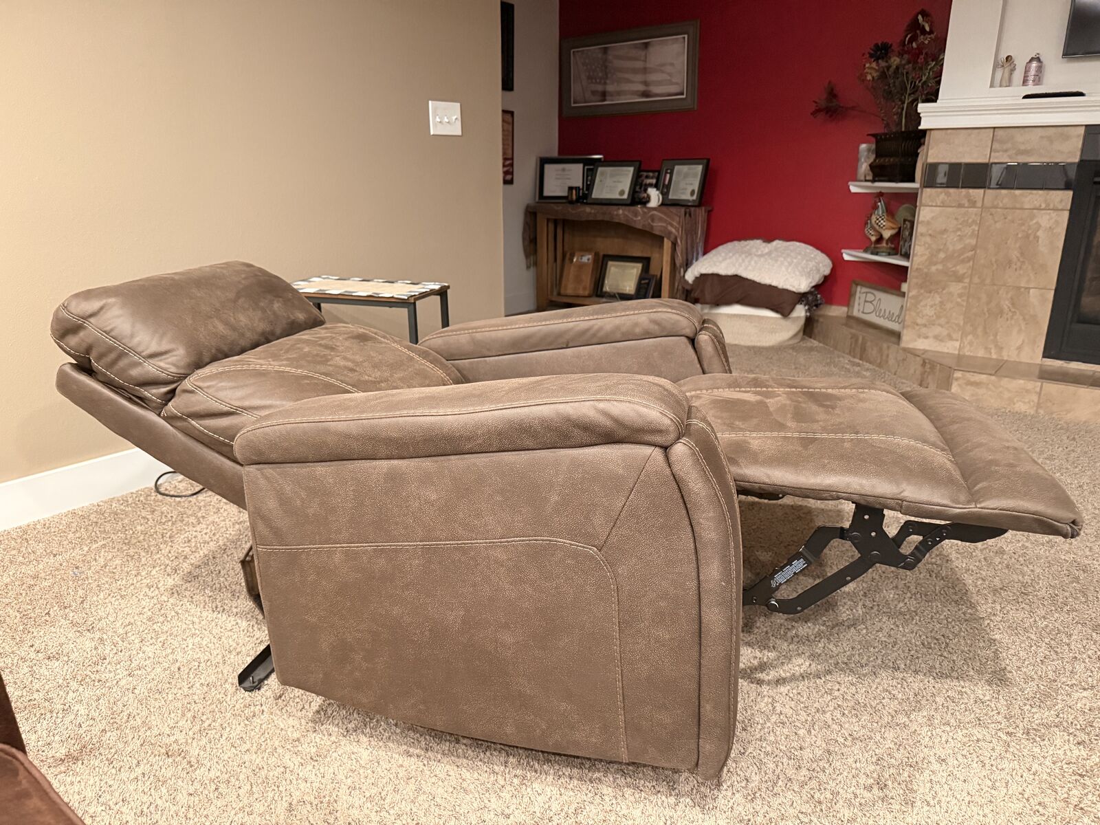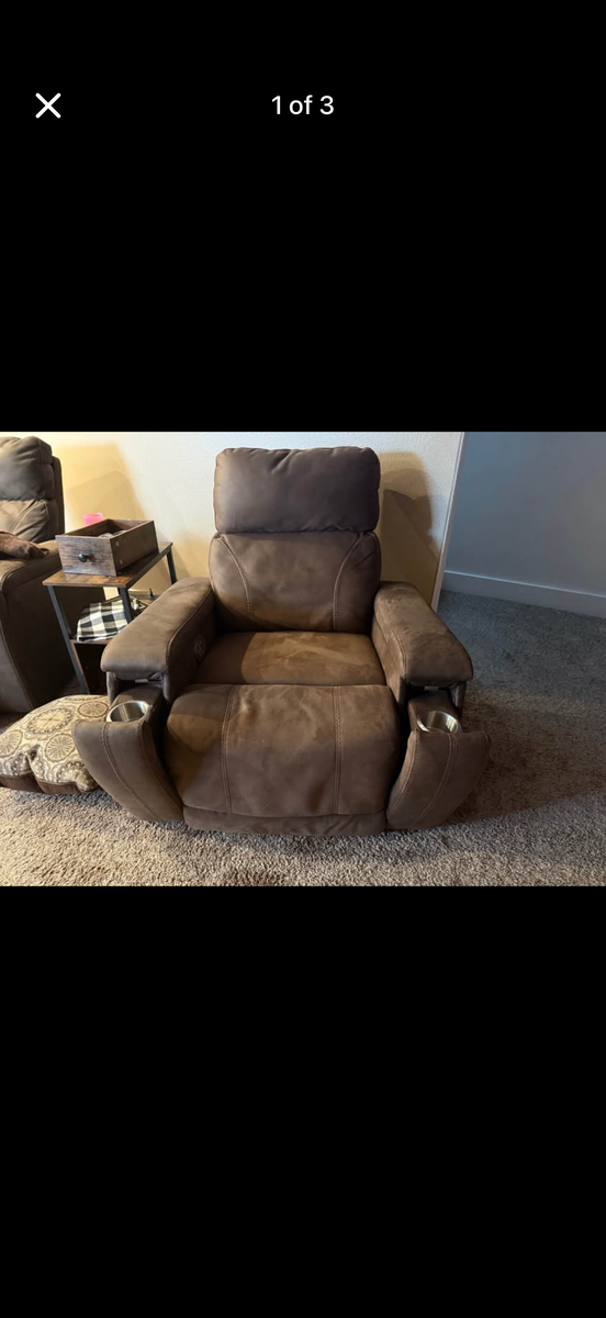 VenmoBrown power recliner. Gently used. Has had a profession fabric protection on it. Has 2 cup holders. The head rest tilts, the lower back has a tilt and then the whole thing reclines.
