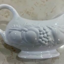 PayPalLarge serving platter with one (1) gravy server. Beautiful Italian Country styled platter with fruit and grape vine motif with a similar gravy server--both are in as-new condition. They are not from the same manufacturer but very similar in design. NO chips or cutlery marks. Platter size: 16.5” X 21” Local Pickup Only! South Ogden, UT