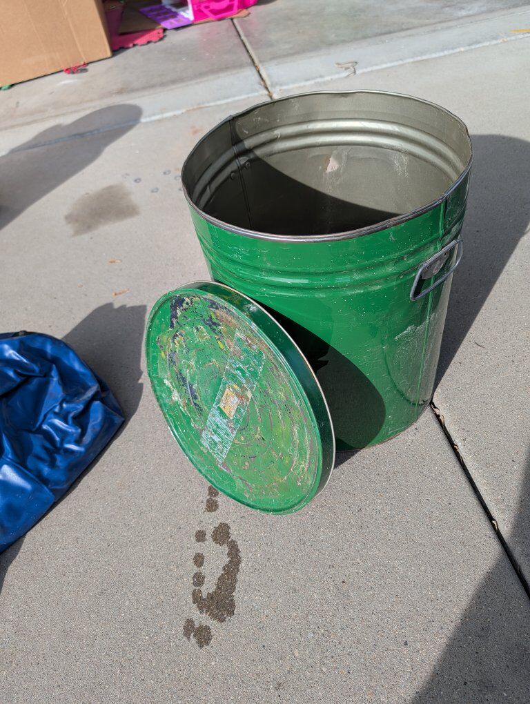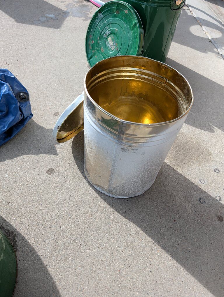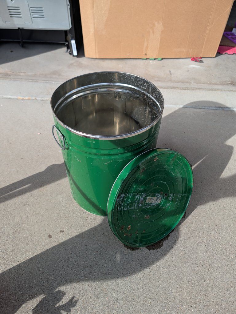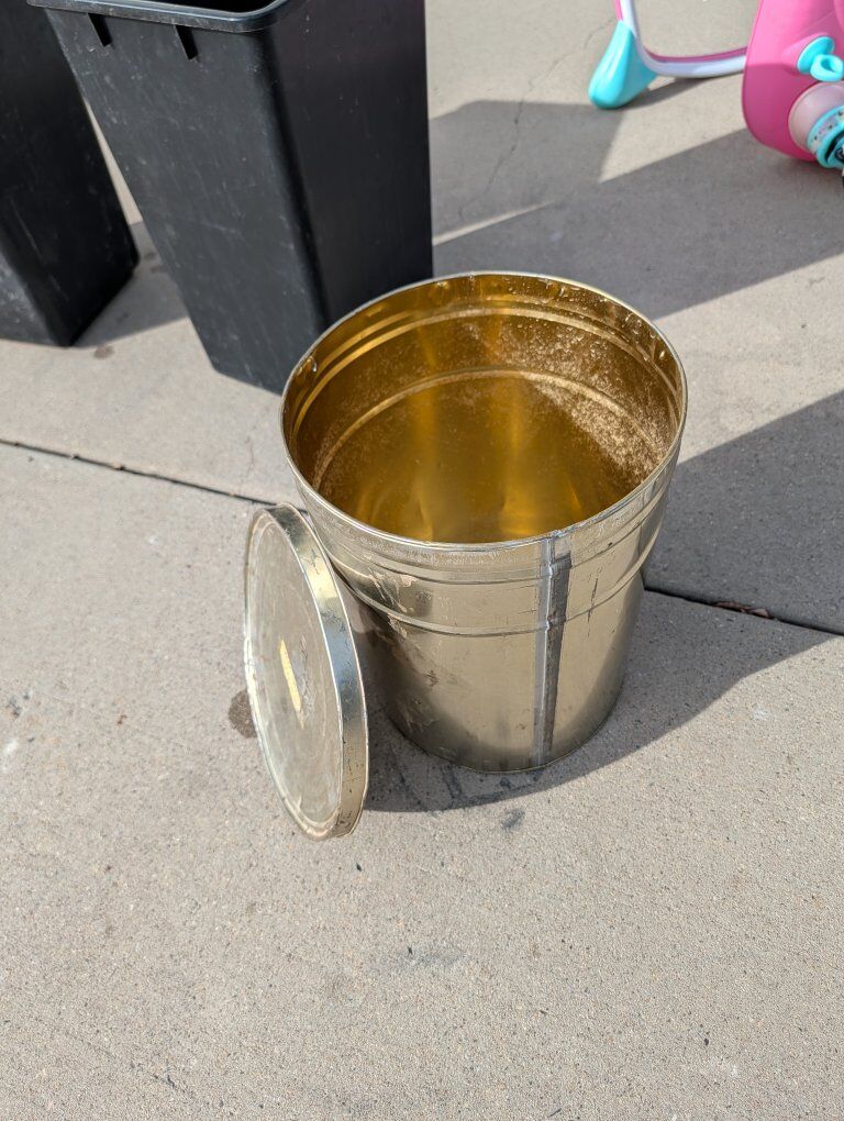 Great for storage for chicken/dog food. Won't crack or break like plastic containers. 1 buck each or whole lot for $5.