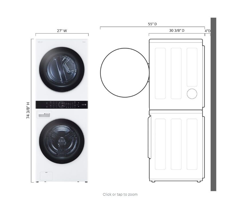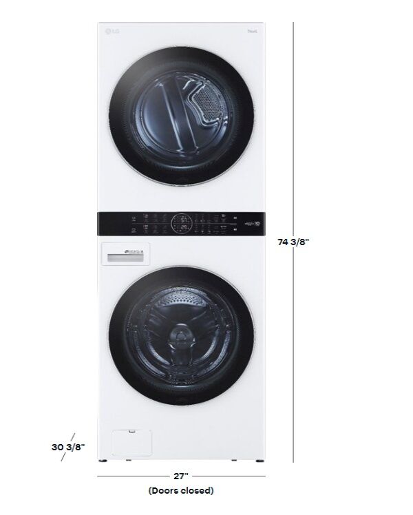 Full-size and fully featured, with the washer on the bottom and dryer on top, the sleek single unit LG WashTower™ takes up half the space, giving you room to add a sink, a folding table or whatever you like. But unlike conventional stacked pairs, LG’s Center Control™ panel is perfectly positioned with both washer and dryer controls at just the right height. Built-in intelligence makes laundry less of a chore by taking out the guesswork, while top-of-the-line innovations put advanced cleaning power within reach.