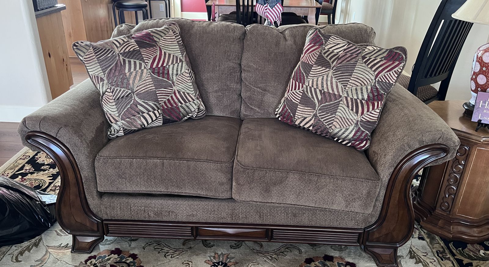 VenmoPurchased originally from RC Willey, the sofa has three cushions, is 7.5 feet wide, the loveseat has two cushions and is 5.5 feet They are rarely used and show no wear. The red cushions are not included. $125 for the sofa, $100 for the loveseat, or $200 for both. Delivery not available. For questions call Stan, 801-361-2200.
