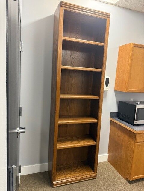Venmo6 shelf oak book case, good condition.