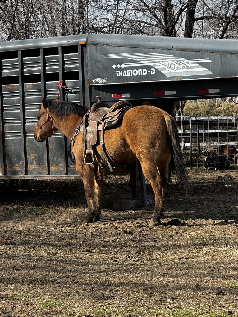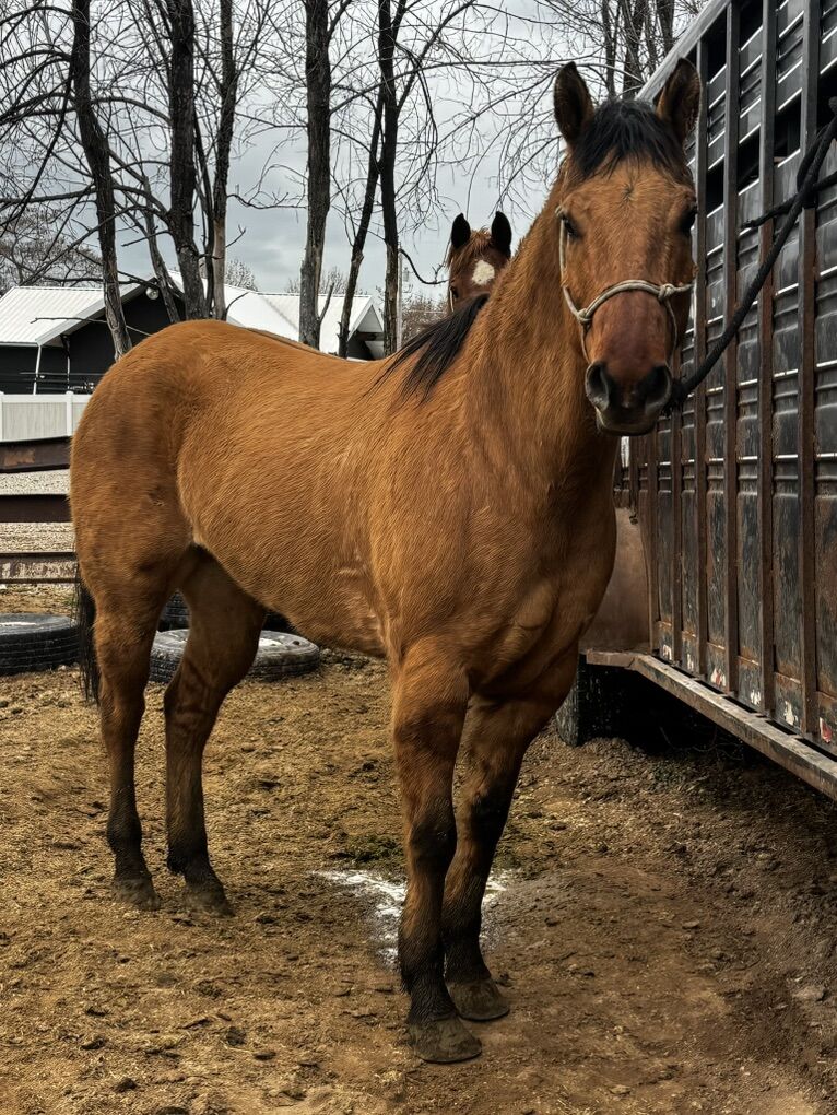 Cochise, or Scooby as we call him, is a 6 year old grade quarter horse gelding. He stands about 15 hh, very athletic built, big boned, straight legged, and has hard feet. He has had no injuries or illnesses, completely sound. Scooby is pretty much a blank slate, he didn’t have much done with him up until he came to us for training. We have saddle broke him, sat on him a couple times, started bit training, taught him to lunge, tie, give to pressure, etc. He is extremely smart and trainable. He would make an easy project for someone that wants a good ranch, barrel, or rope horse. He has the athleticism to go any direction. He’s very friendly and has an easy to get along with personality. Scooby is by a registered rope stud, out of a grade mare.