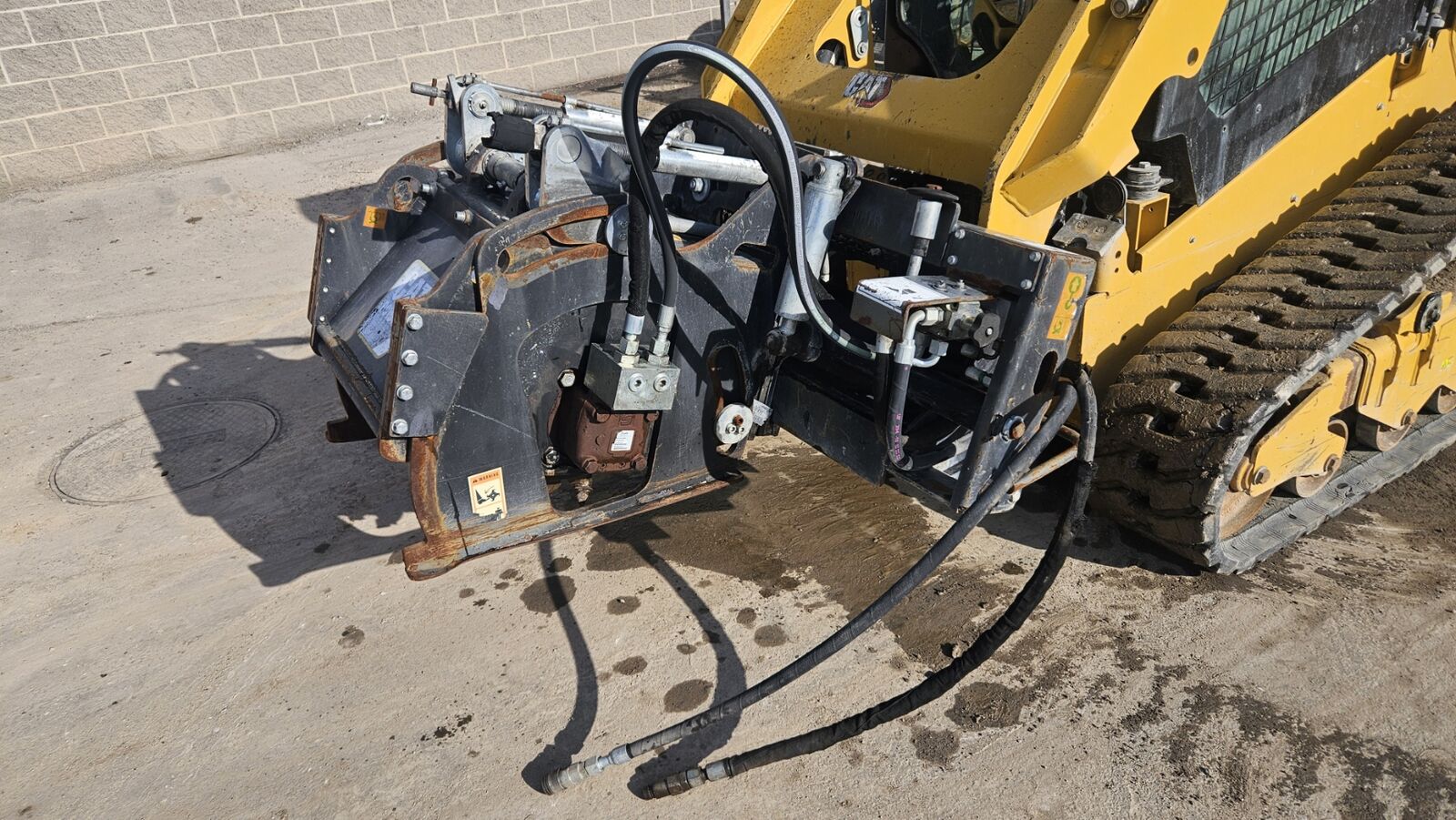 We purchased this millhead attachment new from Wheeler CAT. It can be used with High Flow or non High Flow skid steers. Two hose attachment. Manual adjustment (side-to-side/skis up and down)
