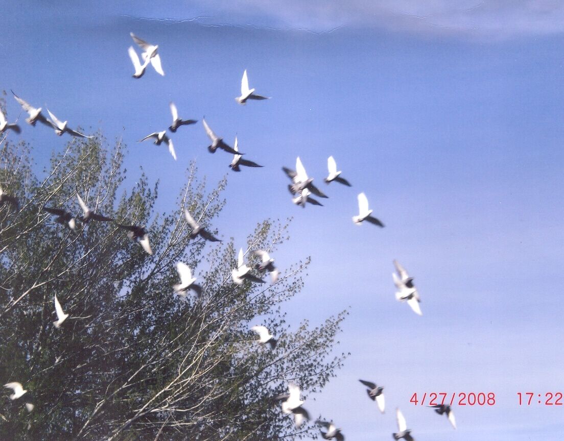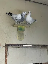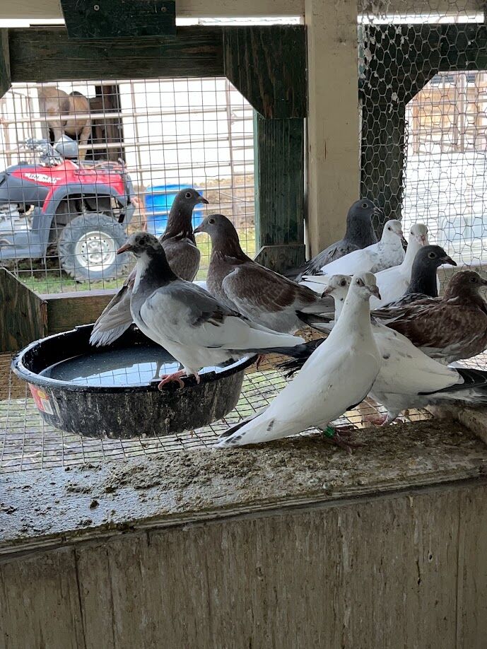 young racing homer pigeons, banded 2026 bands have not been flown yet, could be trained to home at your loft. verity of colors red check, blue bar, bandits white with black and white.