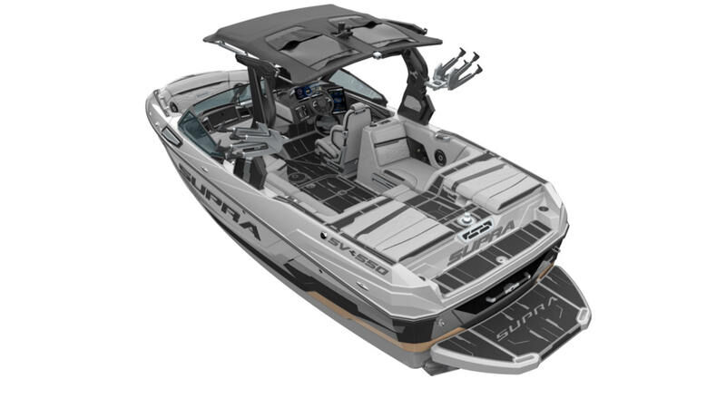 Supra SV with Supercharged 575 Raptor engine. This boat comes with DSD sound system, Swellsurf system, surf exhaust pipe, chill tech vinyl, Boatmate trailer, and more.