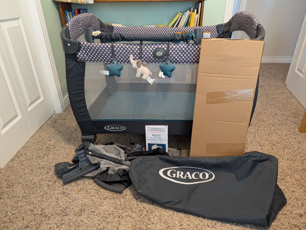 VenmoGraco Pack 'n Play Playard Reversible Napper & Changer LX. Only used a handful of times; we thought we'd use it more, but ended up not needing to. No rips, stains, or smells. Playard can be configured as a bassinet, and with a reversible napper/changer, a toy bar, and/or a side storage bag. We only ever used it as a playard, so all accessories are brand new. Comes with owner's manual. Comes from a pet free, smoke free home.