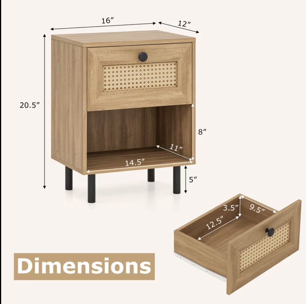 ApplePayRattan Nightstand – Natural Boho Style
