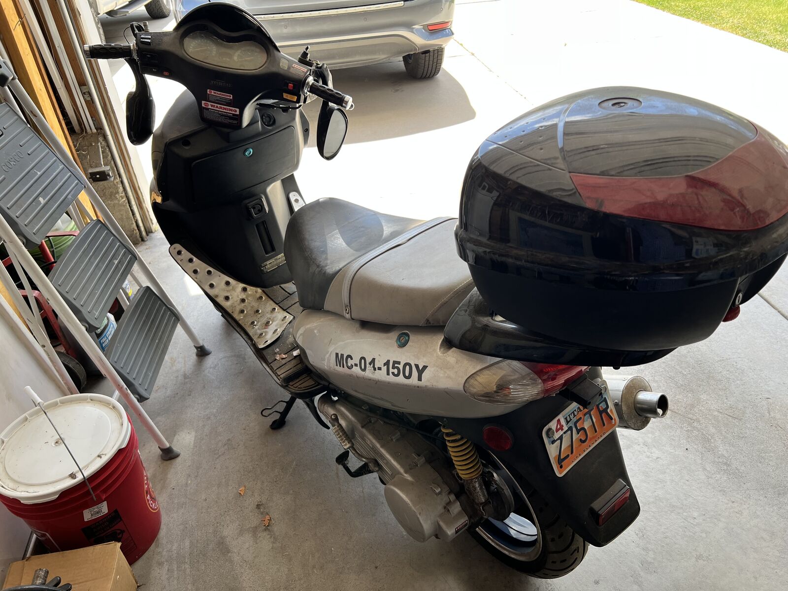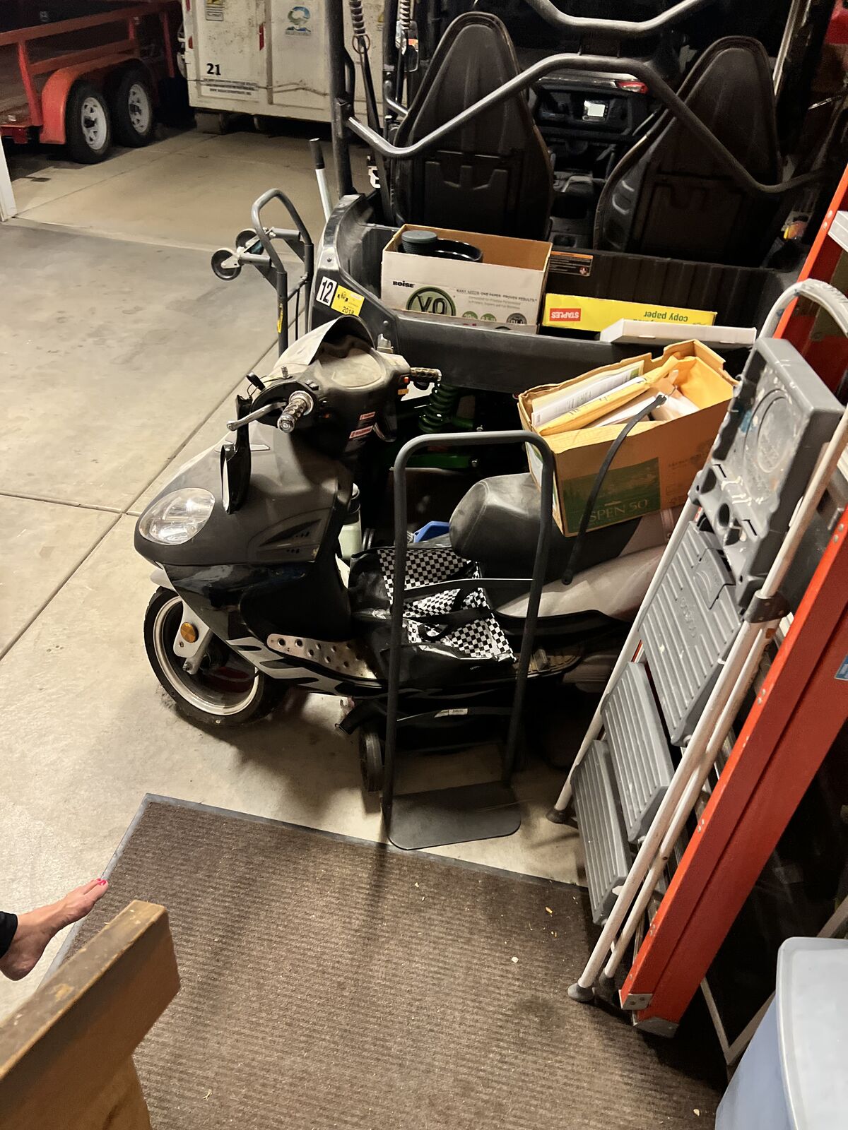 Has been sitting for about 8 years. Mirrors broken. All the pieces are still there. worked great until I had to stop using it. Has a carrier in the back.