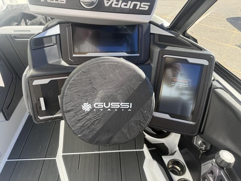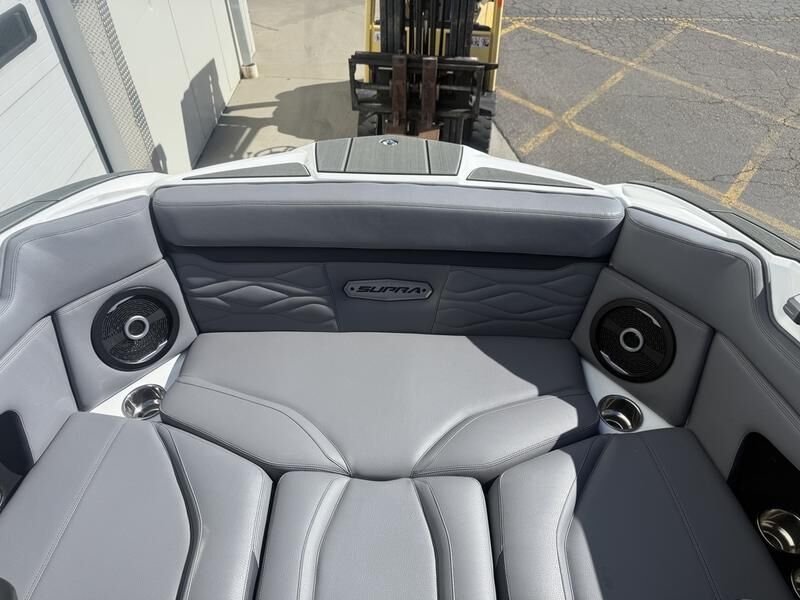 Supra SE 575 with Supercharged Raptor engine. This boat comes with a power bimini, DSD sound system, Swellsurf system, thrusters, surf pipe, triple axle Boatmate trailer, and more.