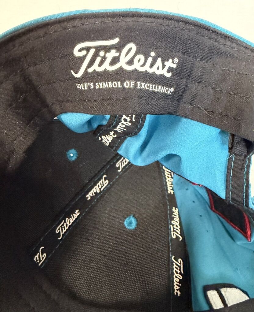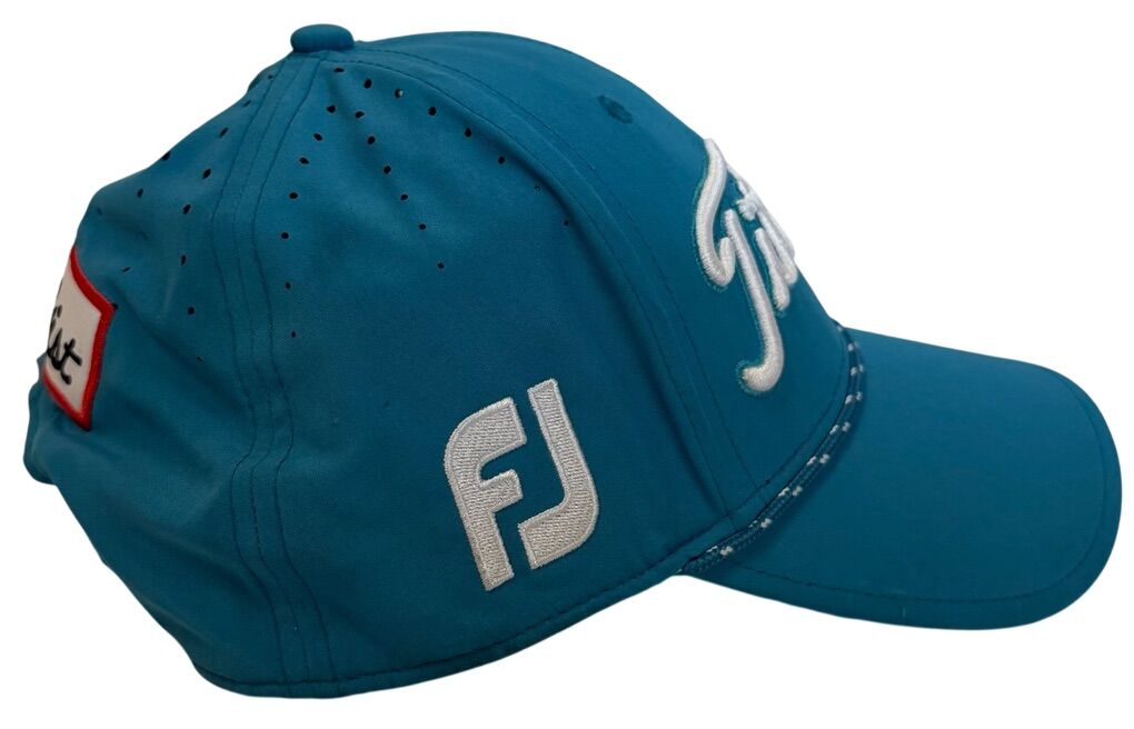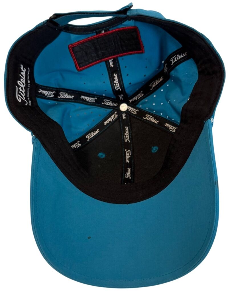 The Titleist Brand Tour Breezer Embroidered Teal Rope Unisex Adjustable Golf Hat is a stylish and functional accessory for golf enthusiasts. Made from lightweight polyester material, this hat features an embroidered logo, adjustable sizing, and a mesh back for breathability. The solid blue color and sporty theme make it suitable for both activewear and casual occasions, while the quick-dry and packable features ensure you can always have it on hand for your game. Whether you're hitting the links in the winter, summer, fall, or spring, this hat is perfect for any season.