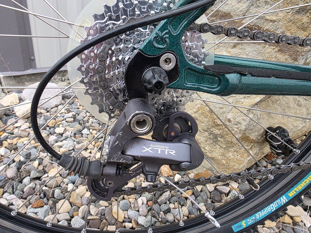 High End components from front to back. Rock Shock Judy SL Forks, Tioga & Titec bars & headset. Top of the line Shimano mechanics. Mavic wheel w/Michelin Wildgripper tires. NOS Giro Fizik, Italian leather saddle, all on a 6160 Aluminum frame.