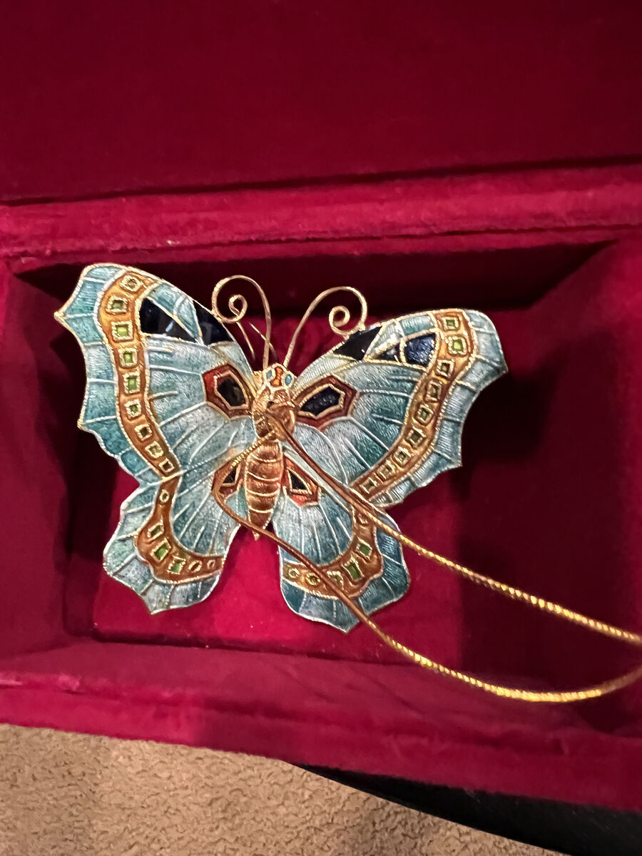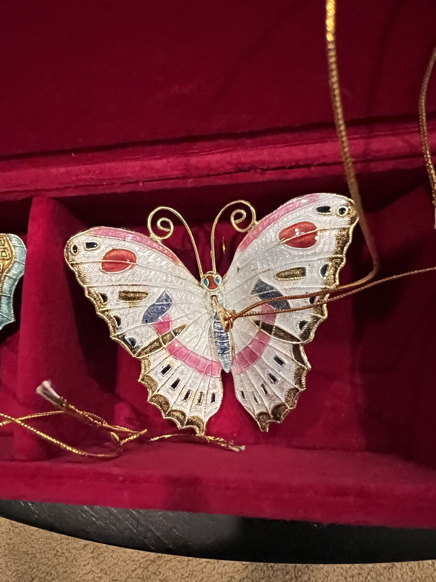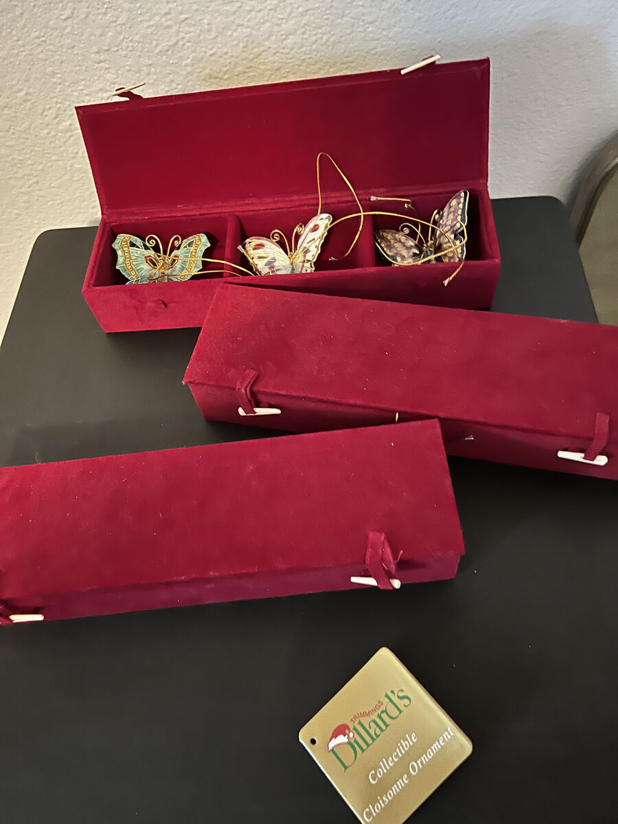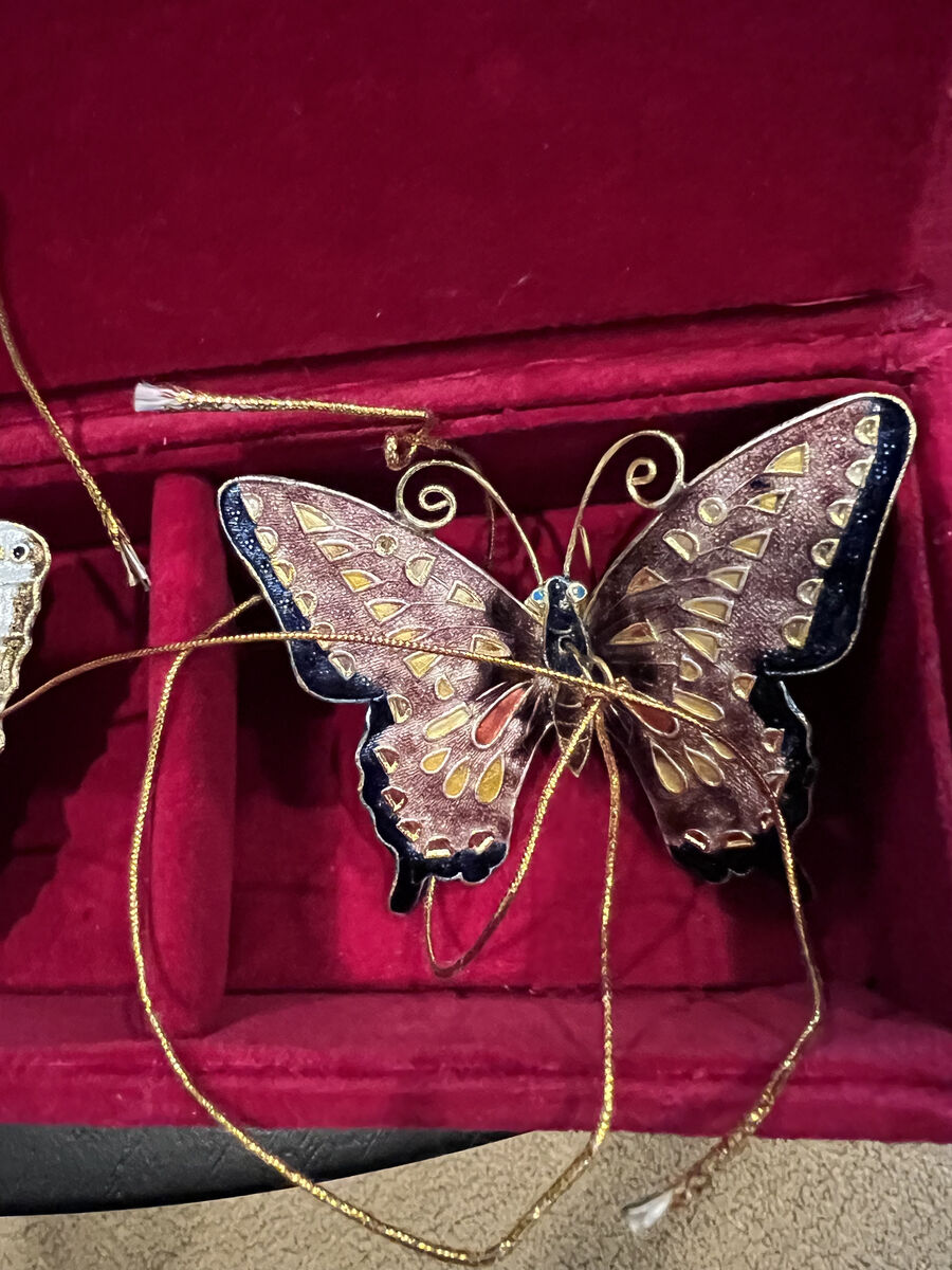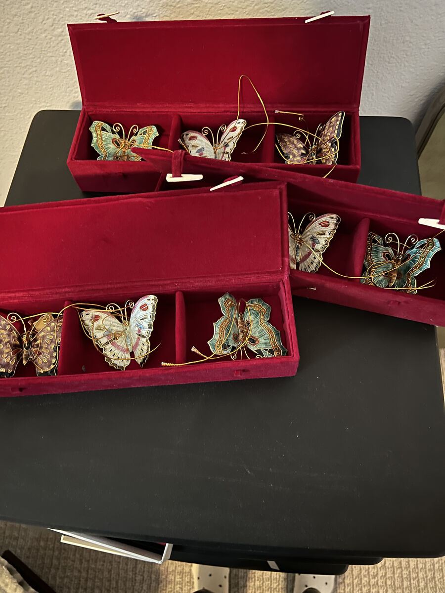 Vintage Cloisonne butterfly ornaments set of 3 with red velvet box I have 3 boxes