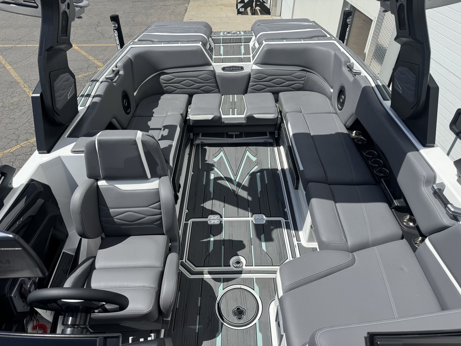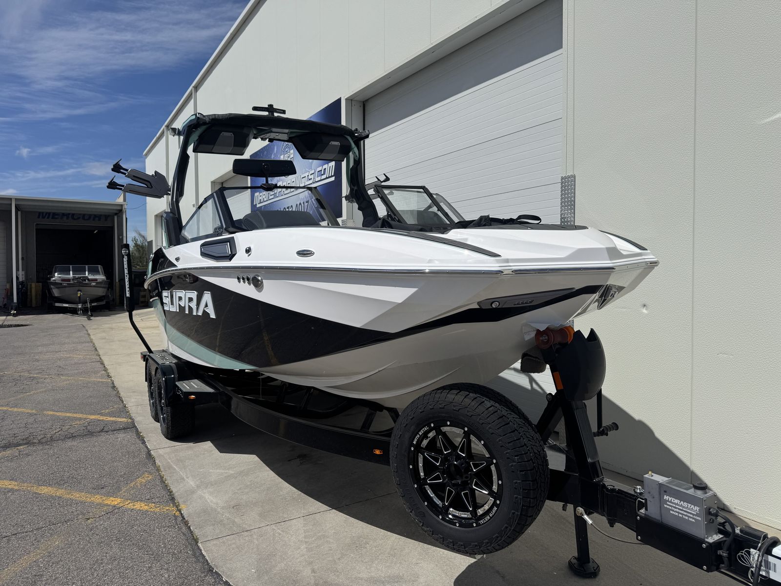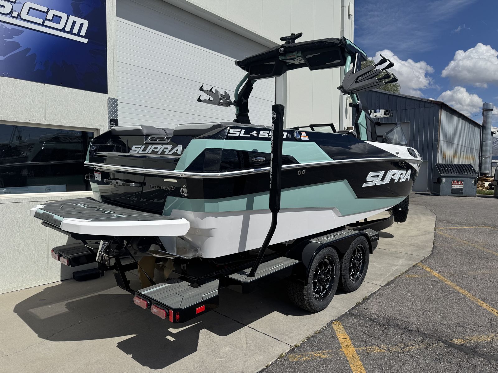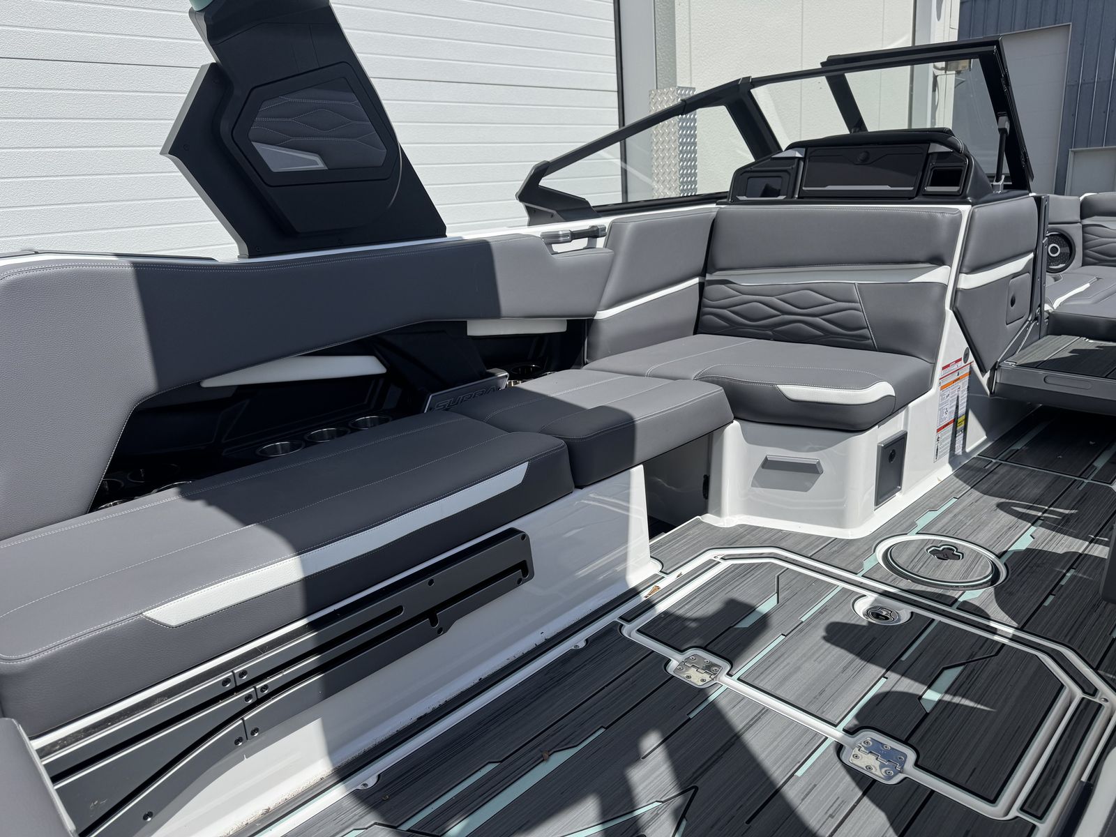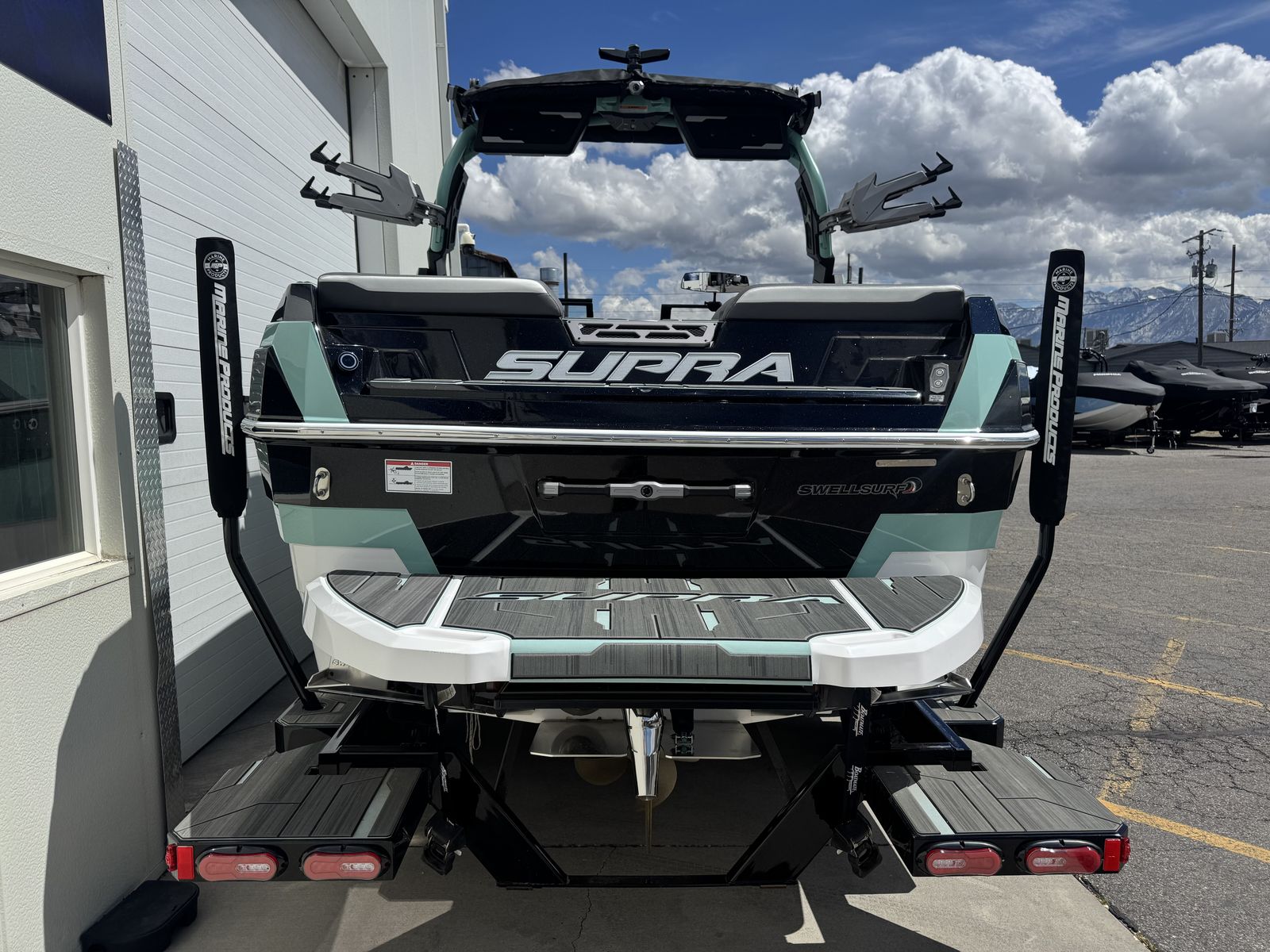 Supra SL 575 with Supercharged Raptor engine. DSD sound system, Edgeforce board racks, Swell surf system included.