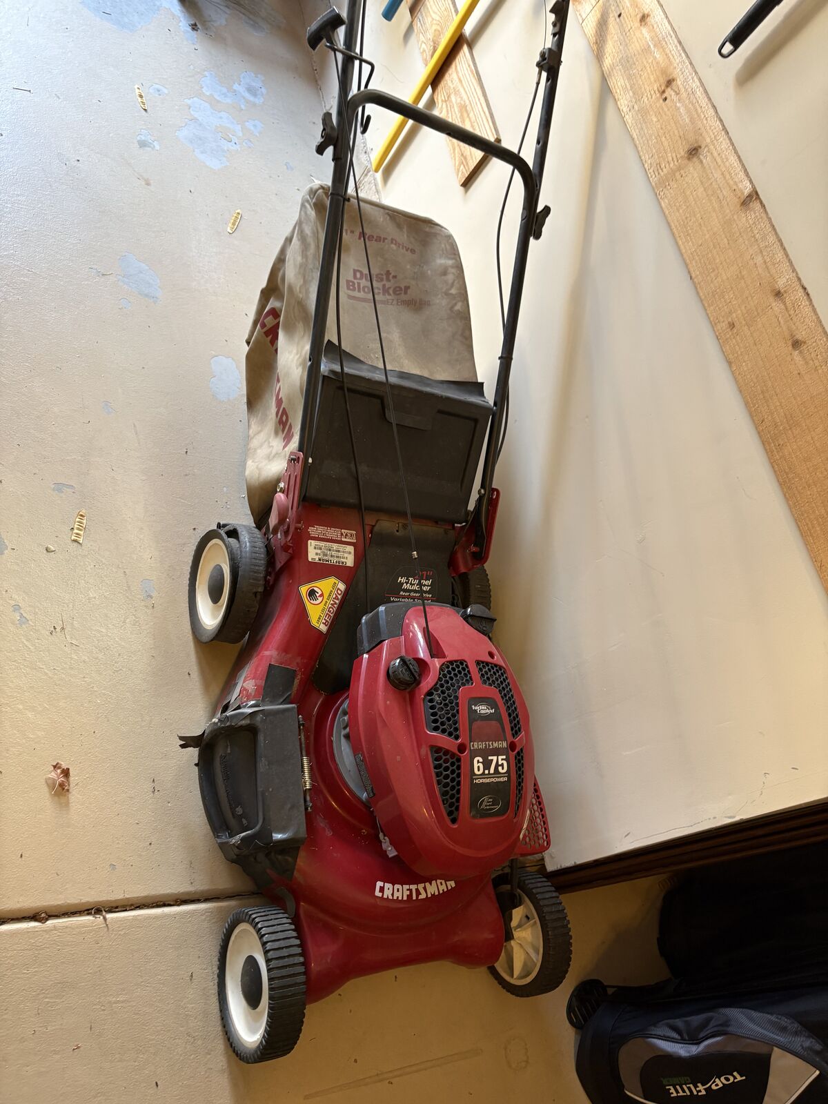 VenmoInfo on pictures. Works great. It does need a need tire. Craftsman 6.75HP lawn mower $300 cash/venmo in Draper