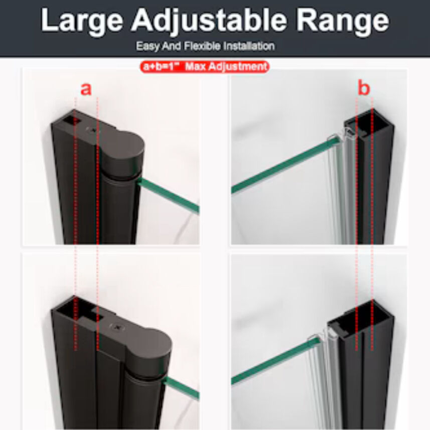LOVMOR 34 inch W x 72 inch H Frameless Circular Pivot Shower Door in Matte Black With Thick SGCC Tempered Glass