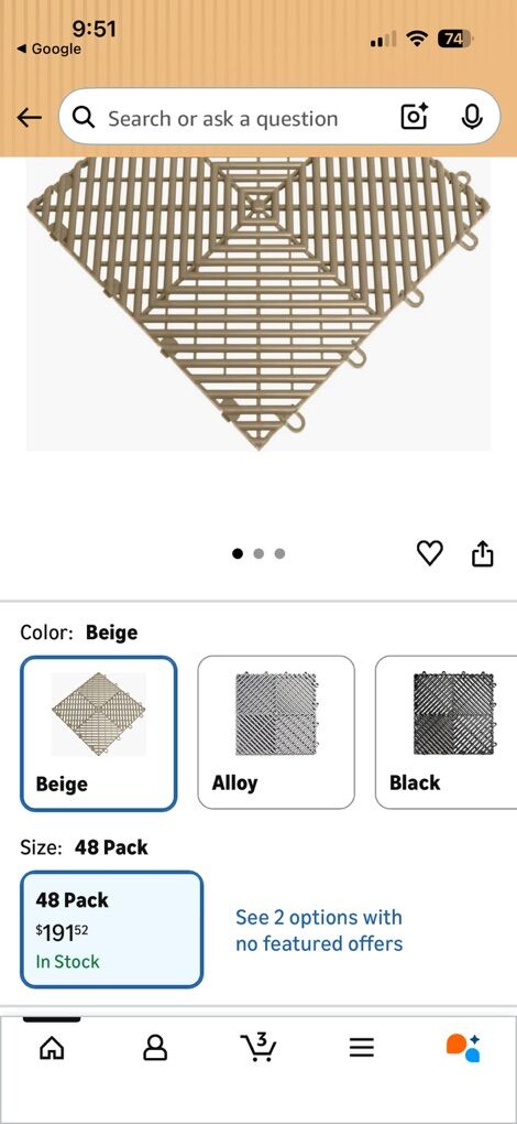 Big Floors RaceDeck Free-Flow Open Rib Self-Draining Design, Durable Copolymer Plastic Interlocking Modular Garage Flooring Tile (Beige, 48 Pack of 12 x 12 Tiles)