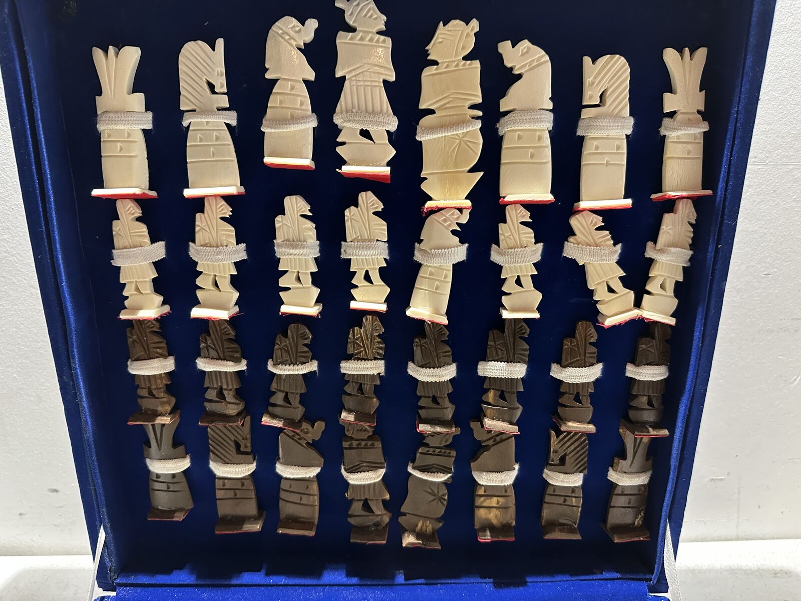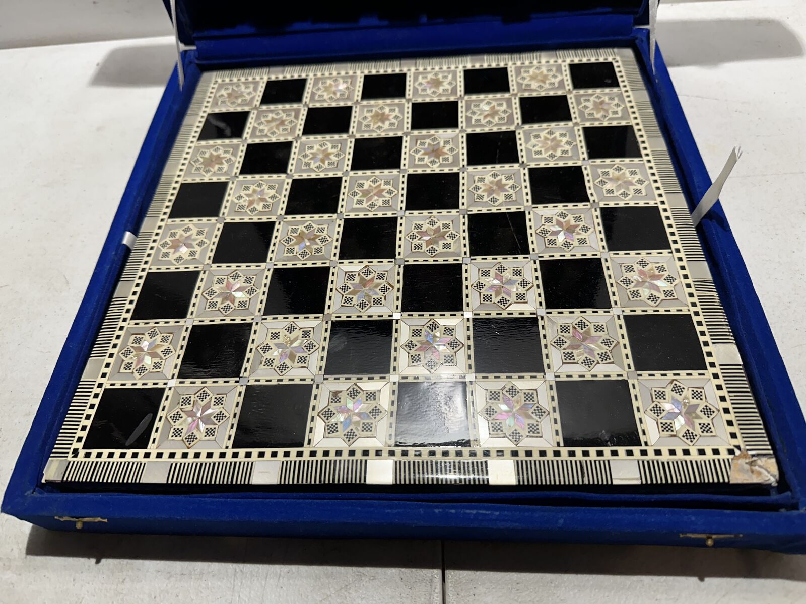 Very cool handmade chess set. Some damage to corners of board and carrying case, as photographed. First come first served. Located in Midvale. Private message me if interested