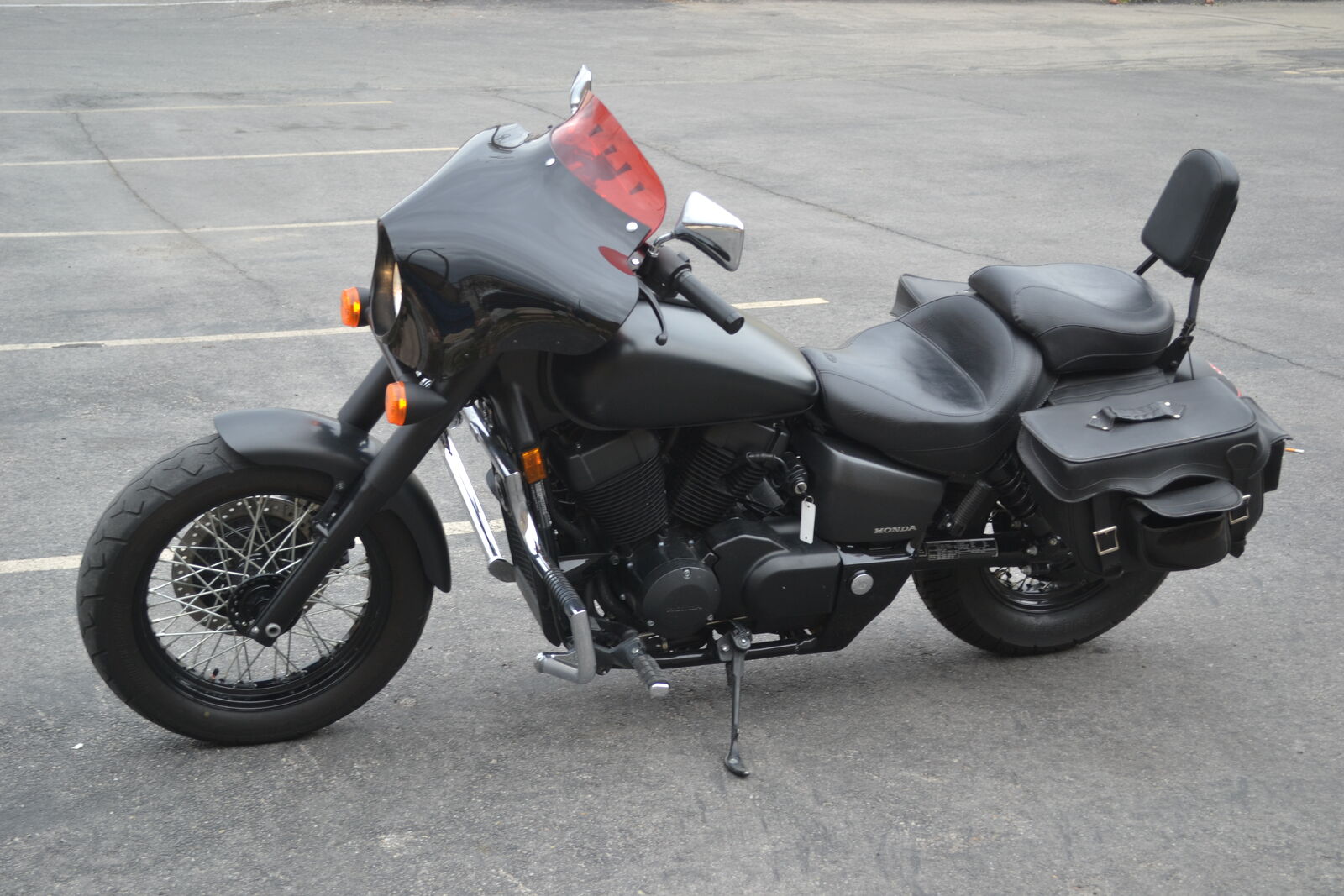 This bike looks and runs great! It only has 10k miles and loaded with upgrades! It comes with: Mustang seats ($500), sissy bar backrest ($250), leather saddle bags ($250), batwing fairing ($350), Cobra exhaust ($600), hypercharger intake ($300), engine guards ($200), and brand new rear tire ($400). Clean and clear title.