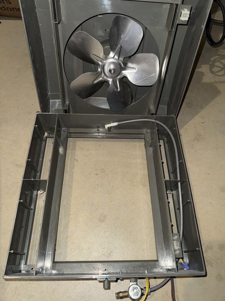 Works fantastic, took with us during move but no longer need it. 120v plug for power or wire to the furnace. Will just need water panel replaced. Compatible with humidistat or most modern thermostats. Will consider offers.