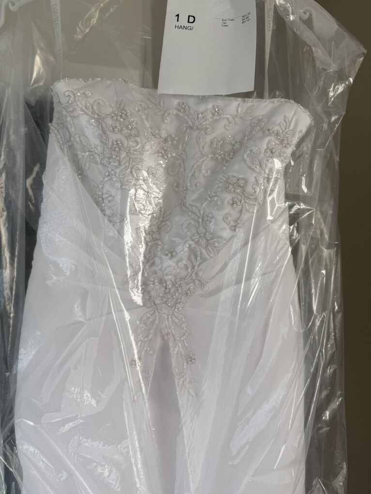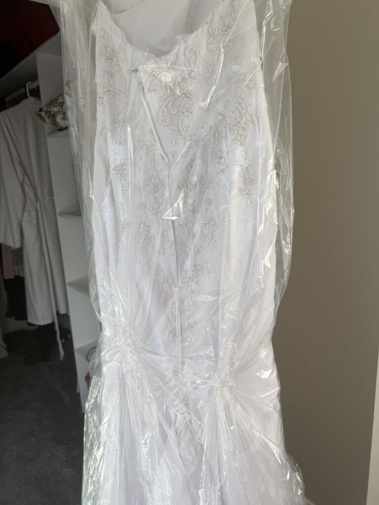 Stunning wedding dress with intricate beadwork that truly sparkles in the light. This gown was purchased new from David’s Bridal and worn once for my ceremony.